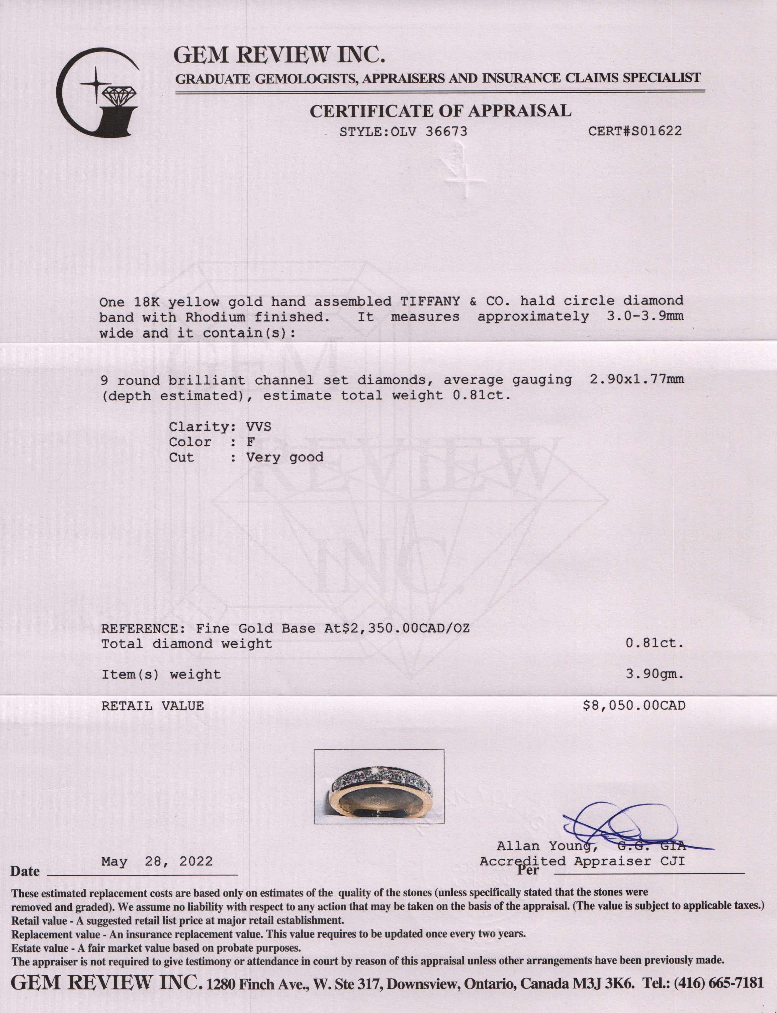 Tiffany & Co. 18k Gold Channel-Set Half-Circle Diamond Wedding Band Ring