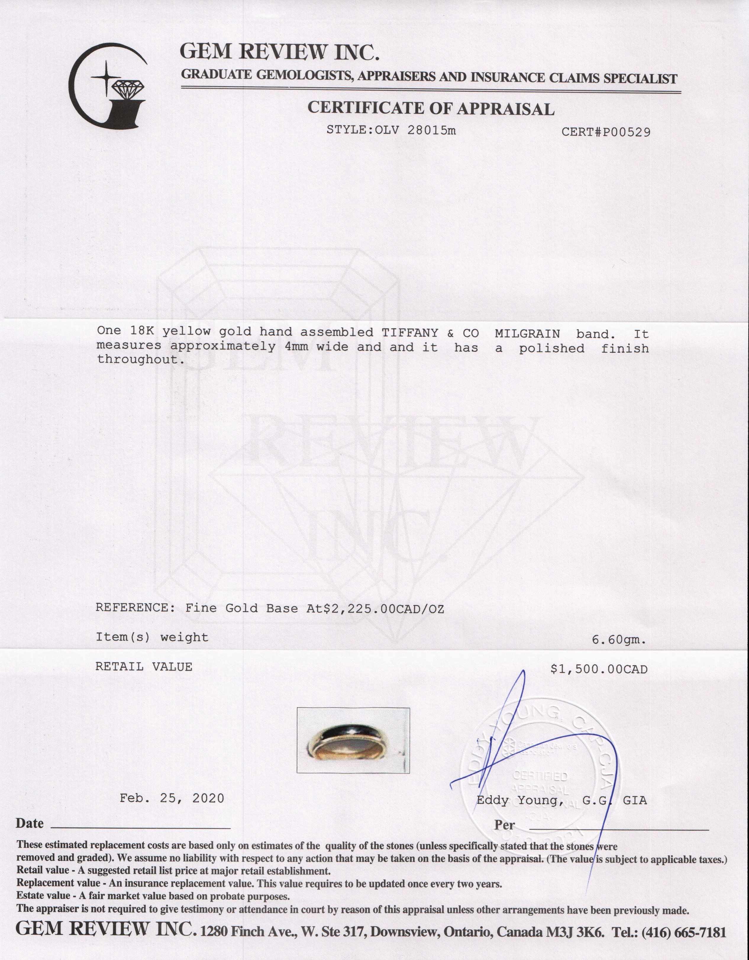 Tiffany & Co. 18k Gold Classic Milgrain Wedding Band Ring