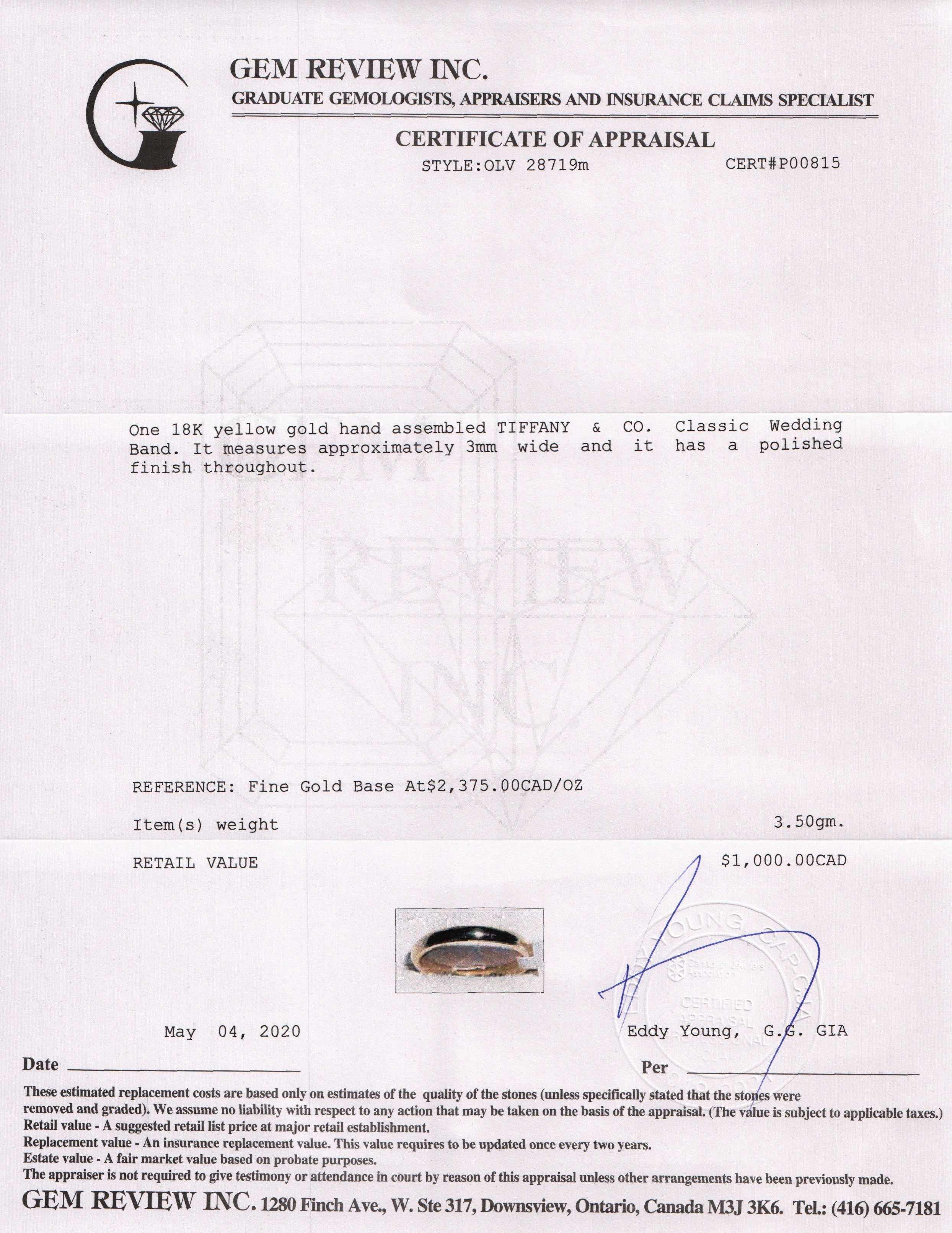Tiffany & Co. 18k Gold Classic Wedding Band Ring