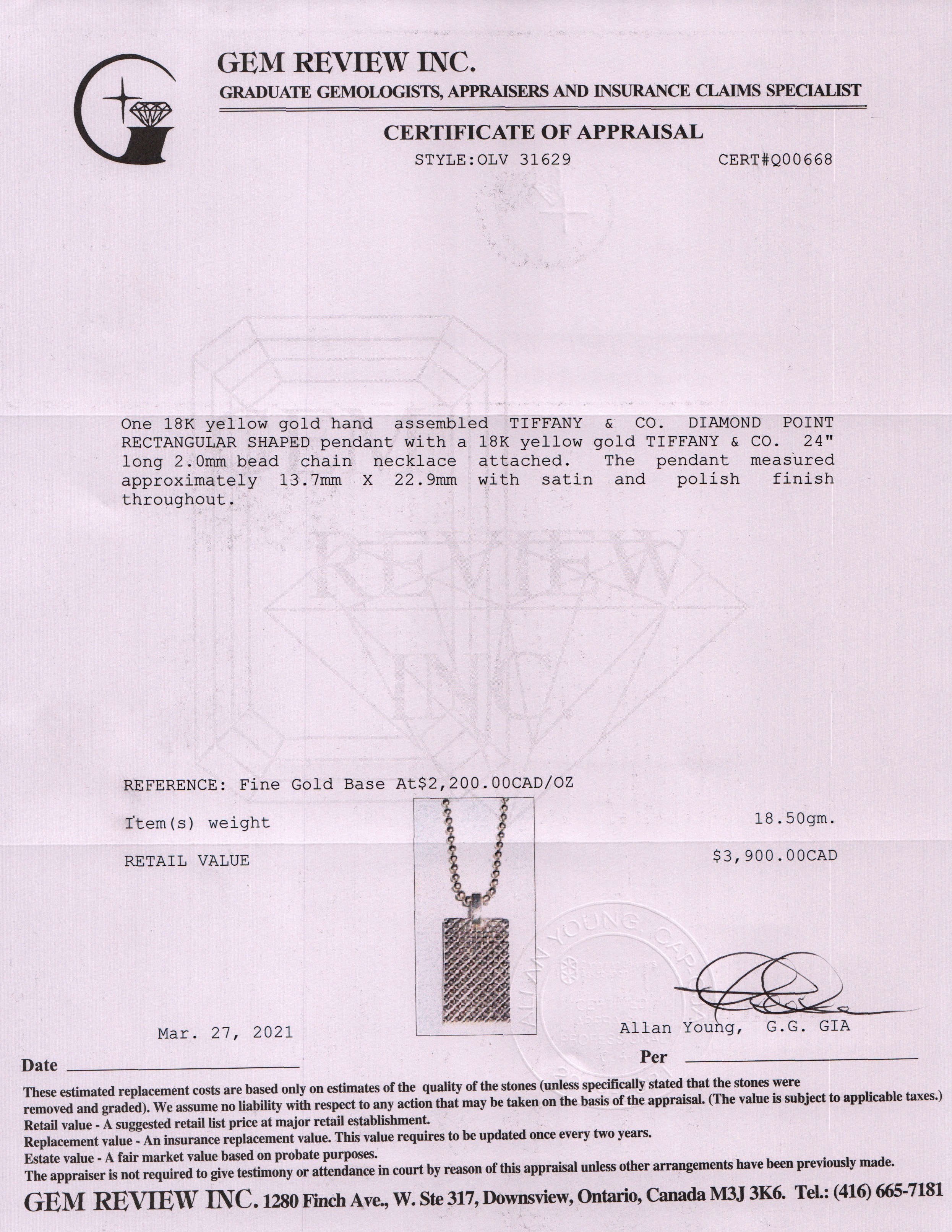 Tiffany & Co. 18k Gold Diamond Point Rectangle Pendant Necklace