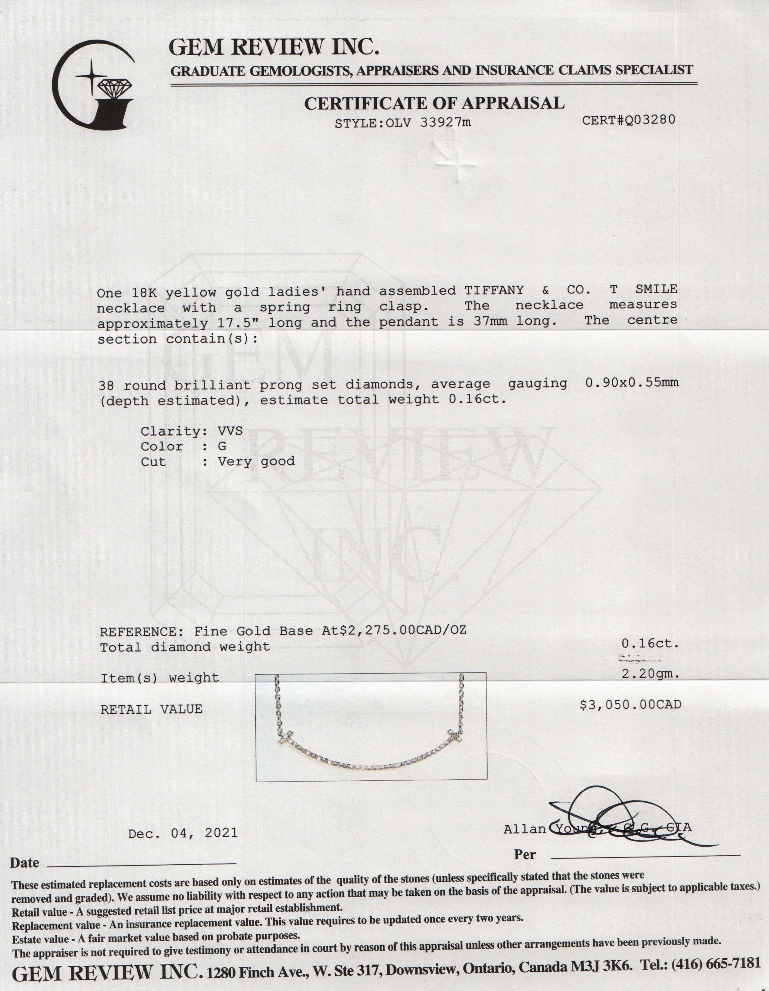Tiffany & Co. 18k Gold Diamond T Smile Pendant Necklace