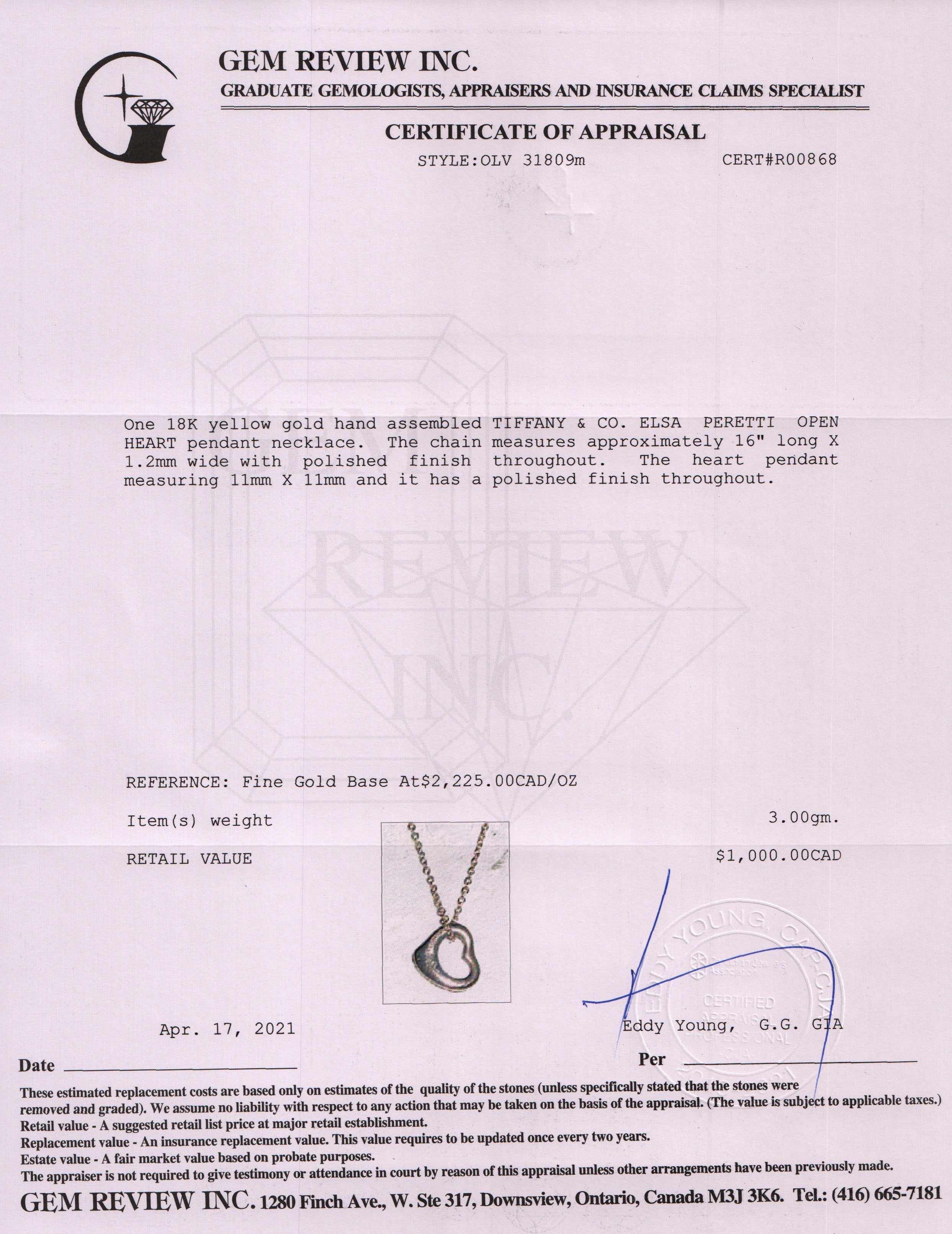 - Signature/Hallmarks: Tiffany & Co.vPeretti Au750 Spain
