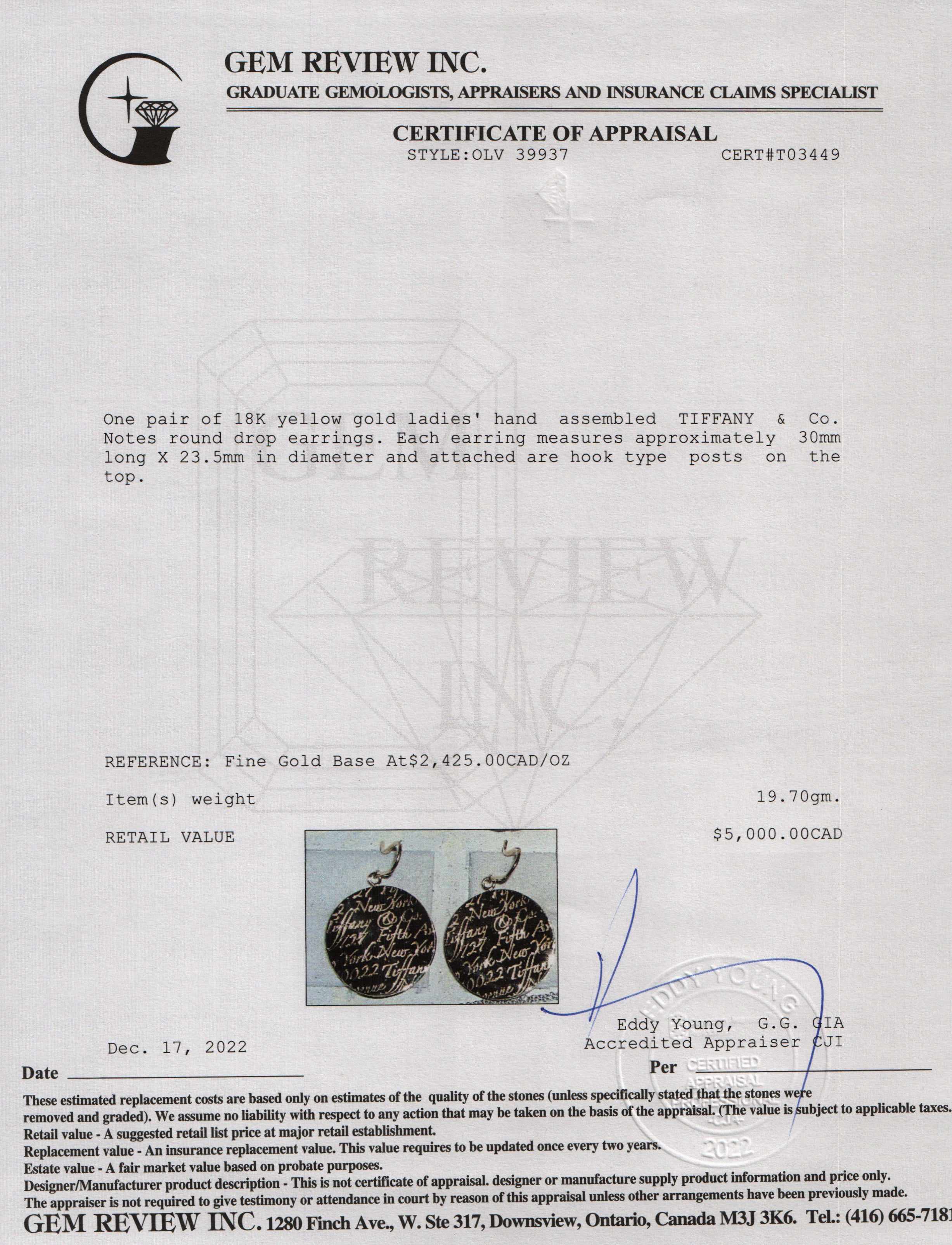 Tiffany & Co. 18k Gold Notes Round Drop Earrings