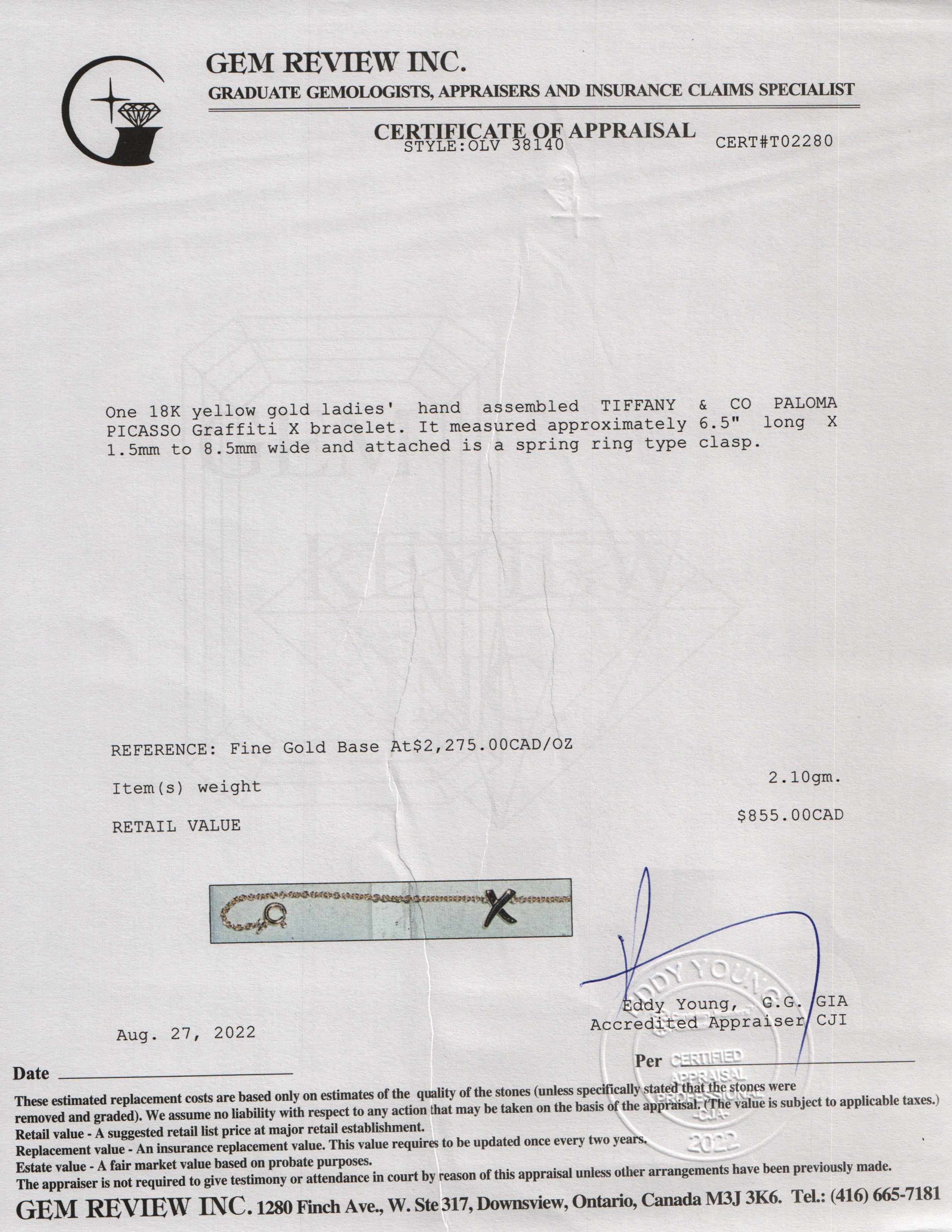 • Signature/Hallmarks: T & Co. Paloma Picasso Au750
