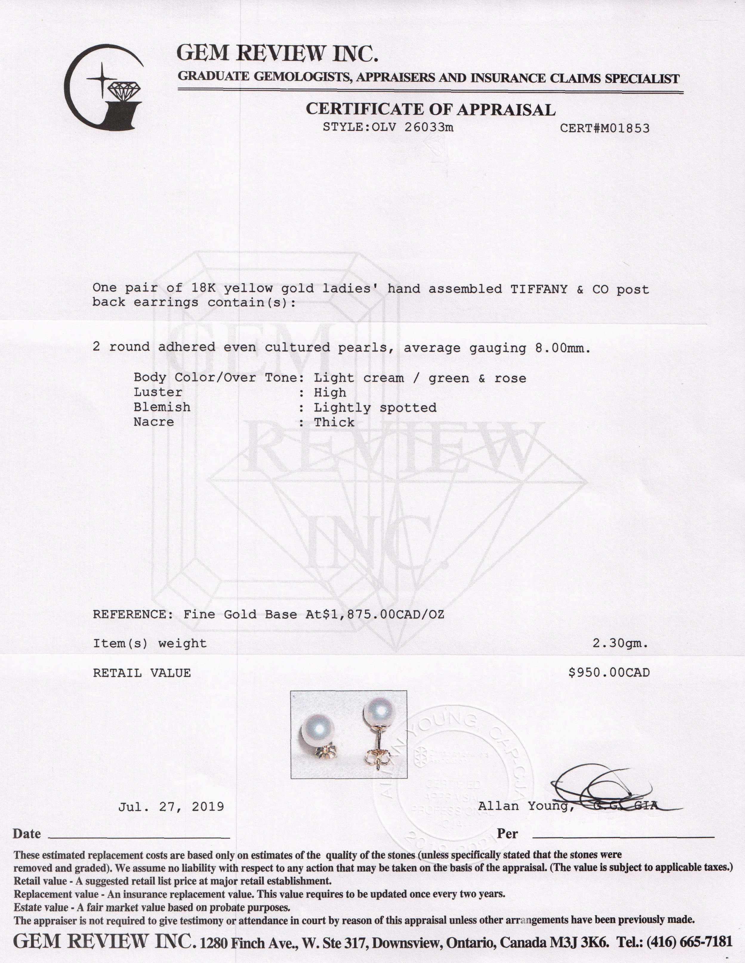 Tiffany & Co. 18k Gold Pearl Stud Earrings