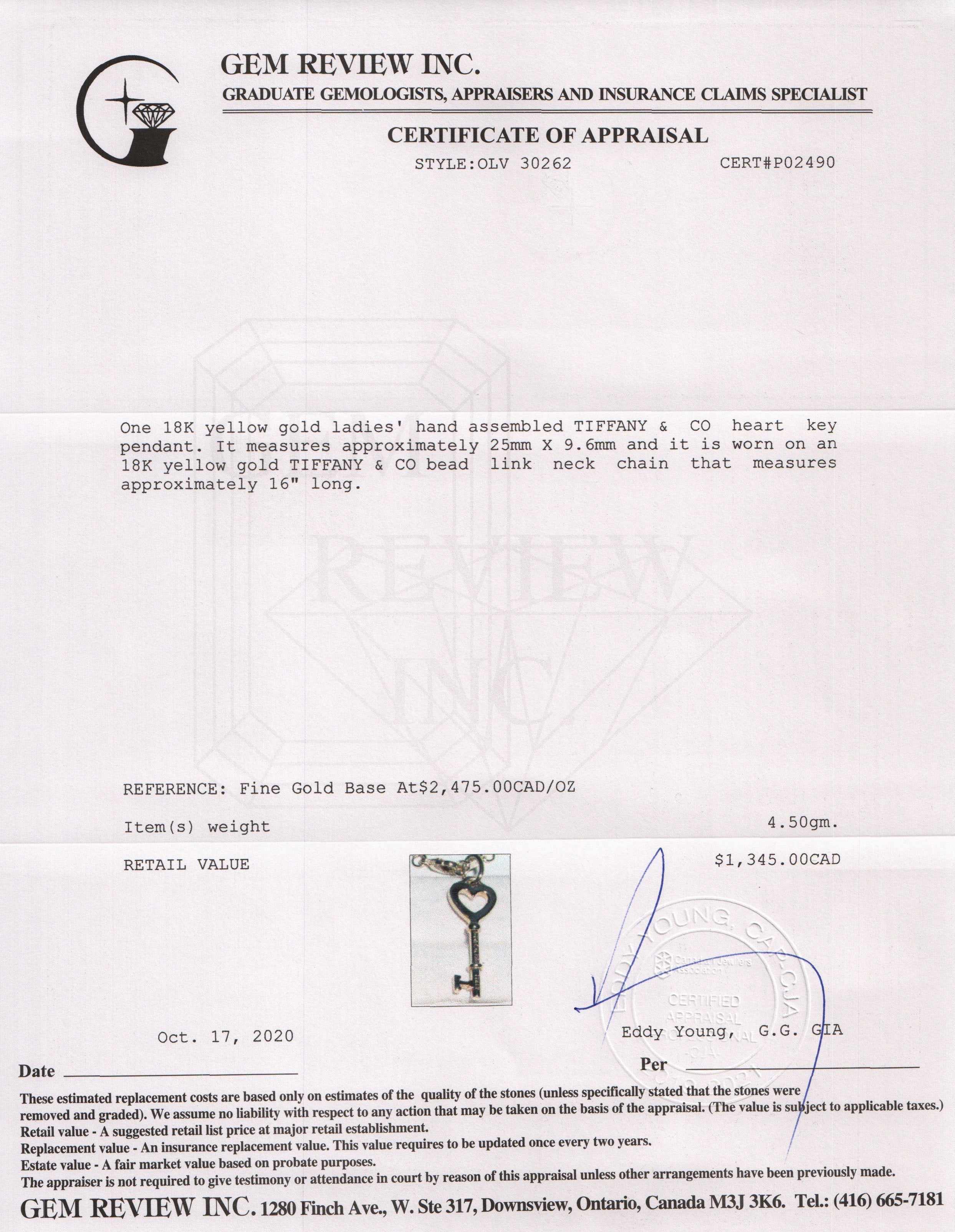 18k Gold Tiffany Keys Heart Key Pendant Necklace