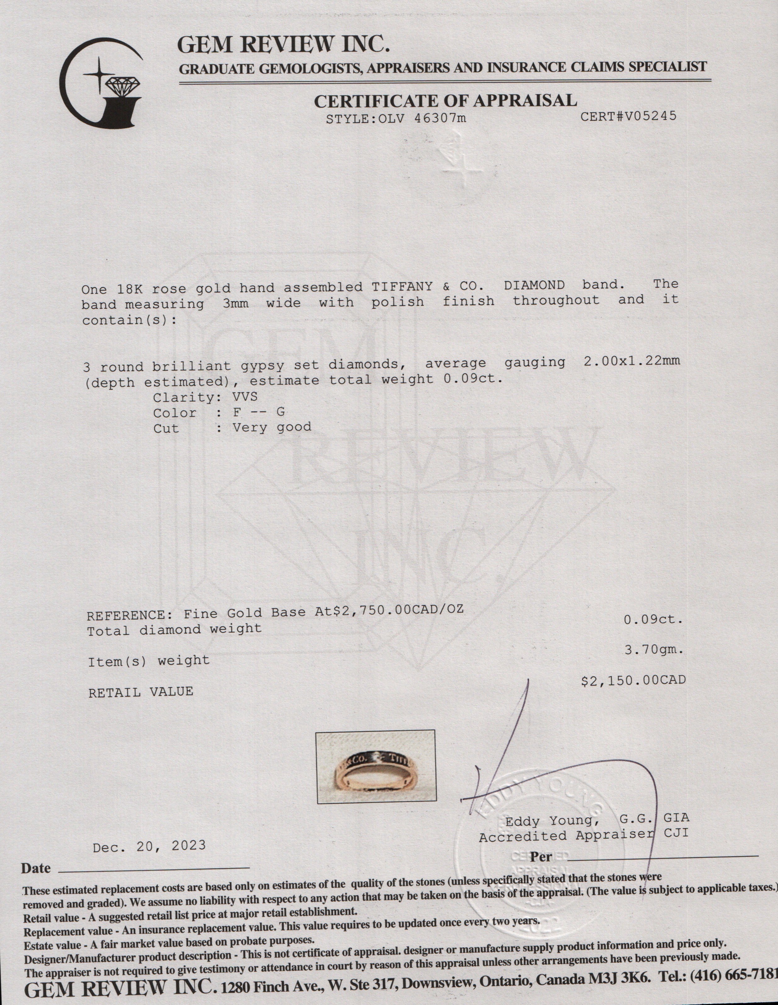18k Rose Gold 3 Diamond 3 MM Band Ring, Size 6.5