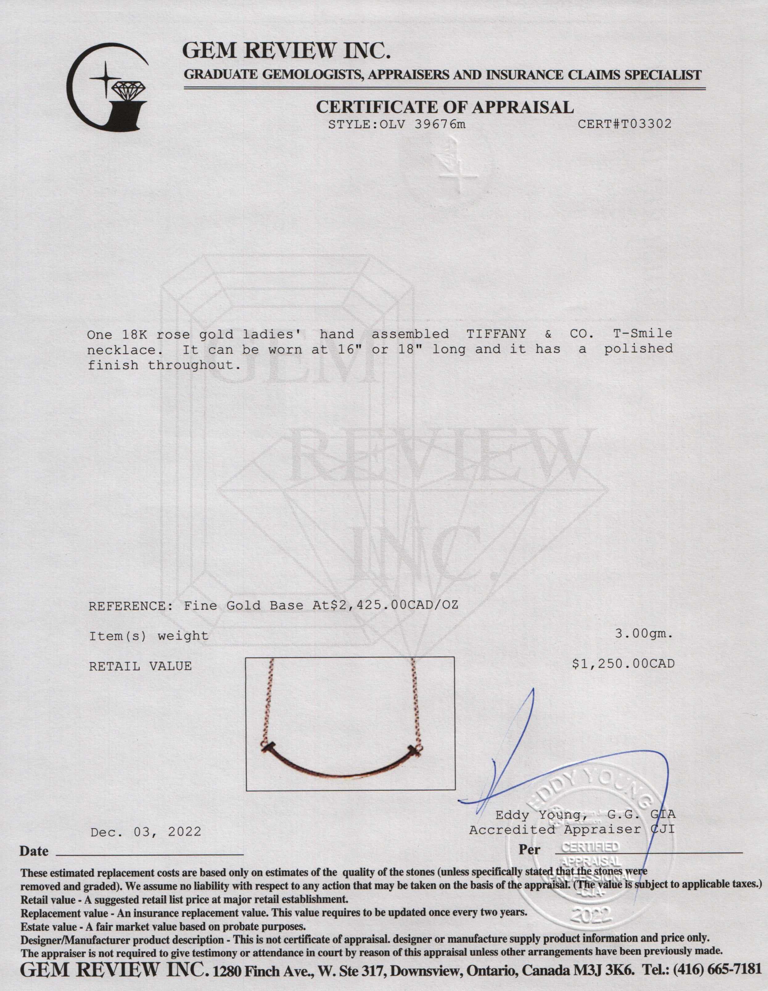 Tiffany & Co. 18k Rose Gold T Smile Pendant Necklace, Small