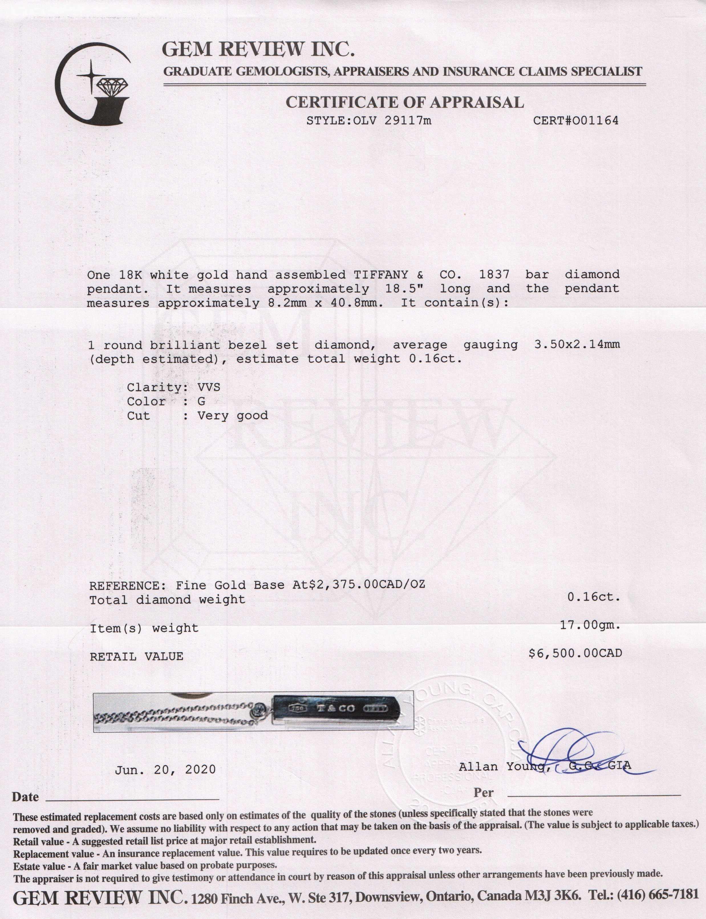 Tiffany & Co. 18k White Gold 1837 Bar Pendant Necklace with Diamond