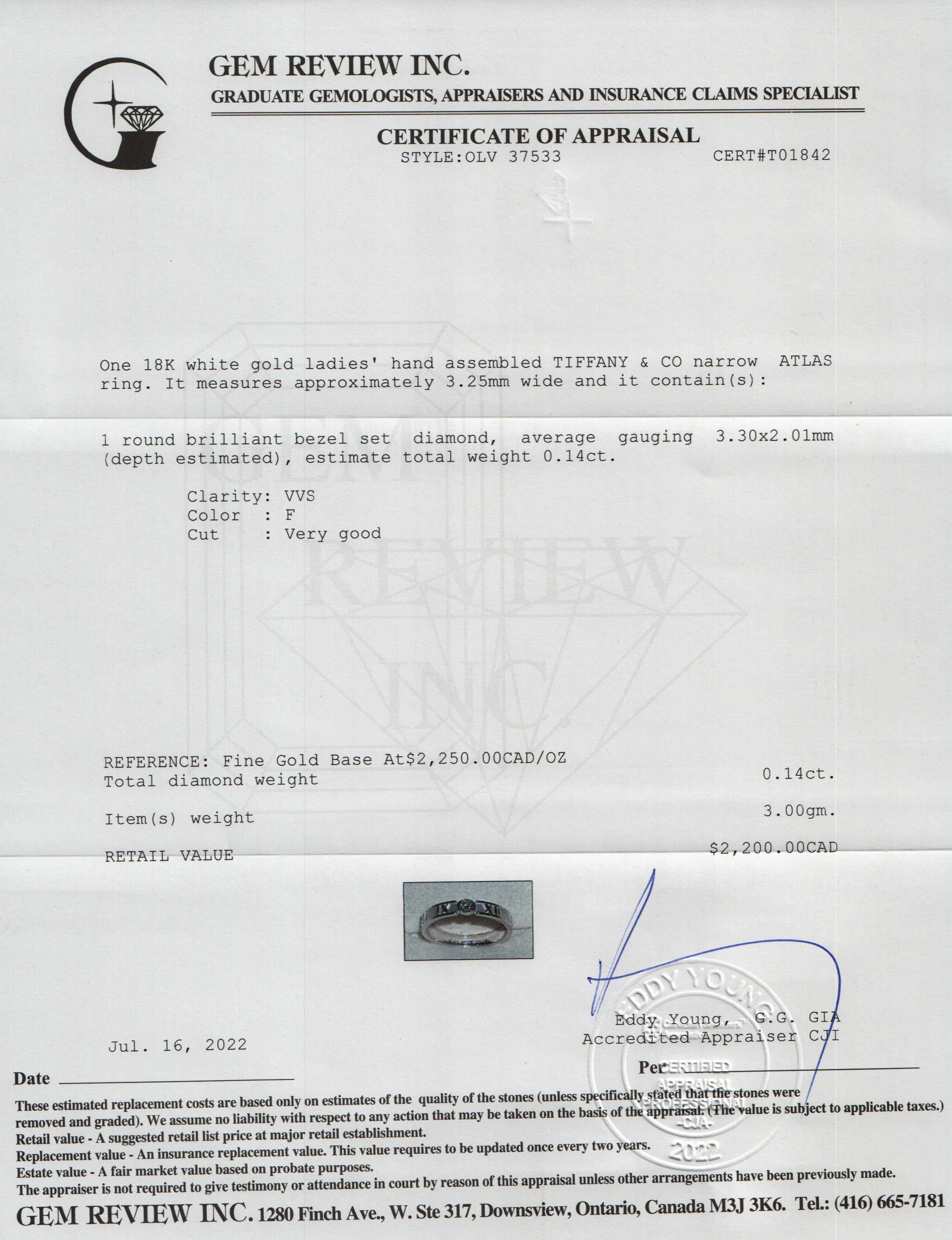 Tiffany & Co. 18k White Gold Diamond Atlas Narrow Ring