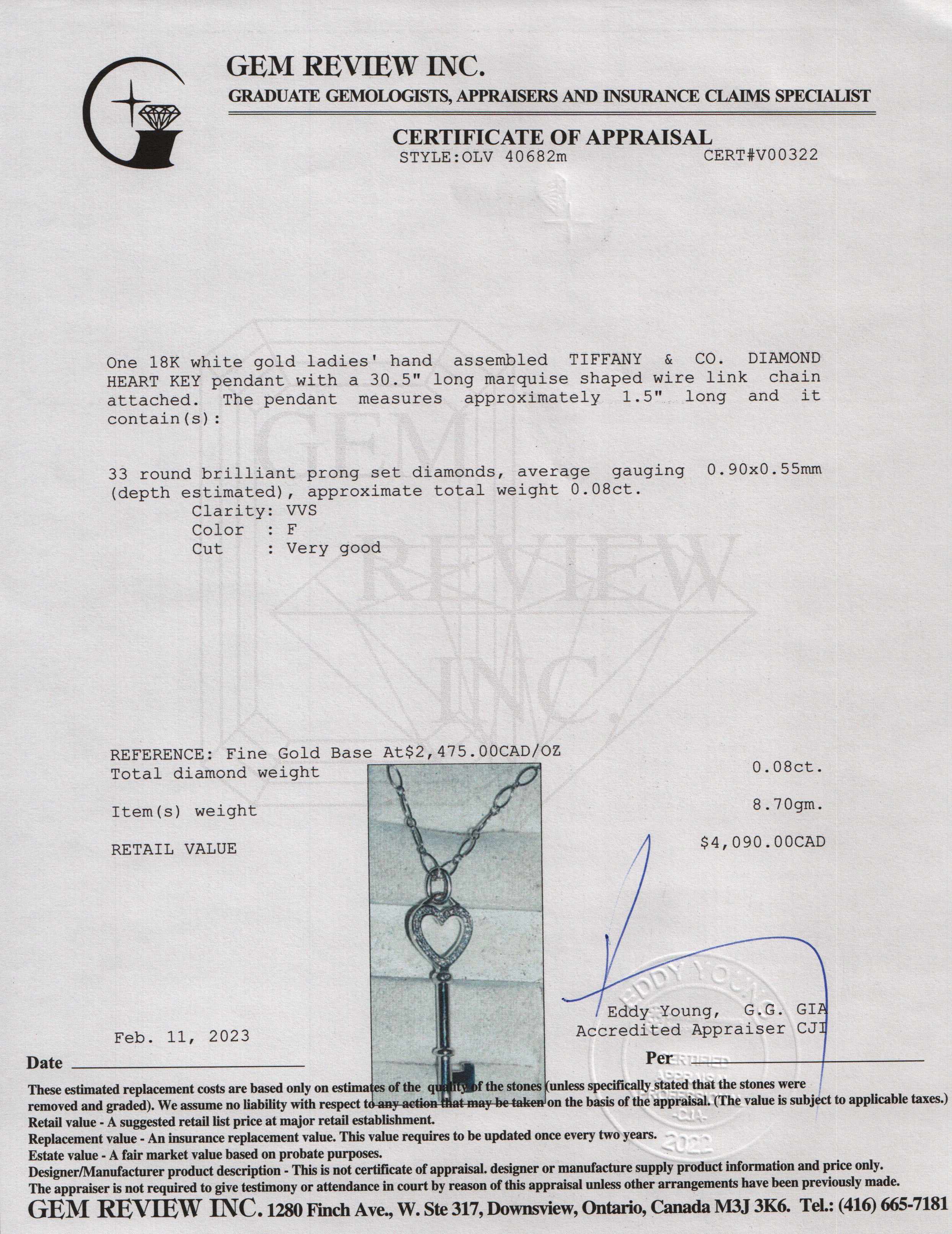 Included Items: Original Tiffany Box and Gem Review Appraisal