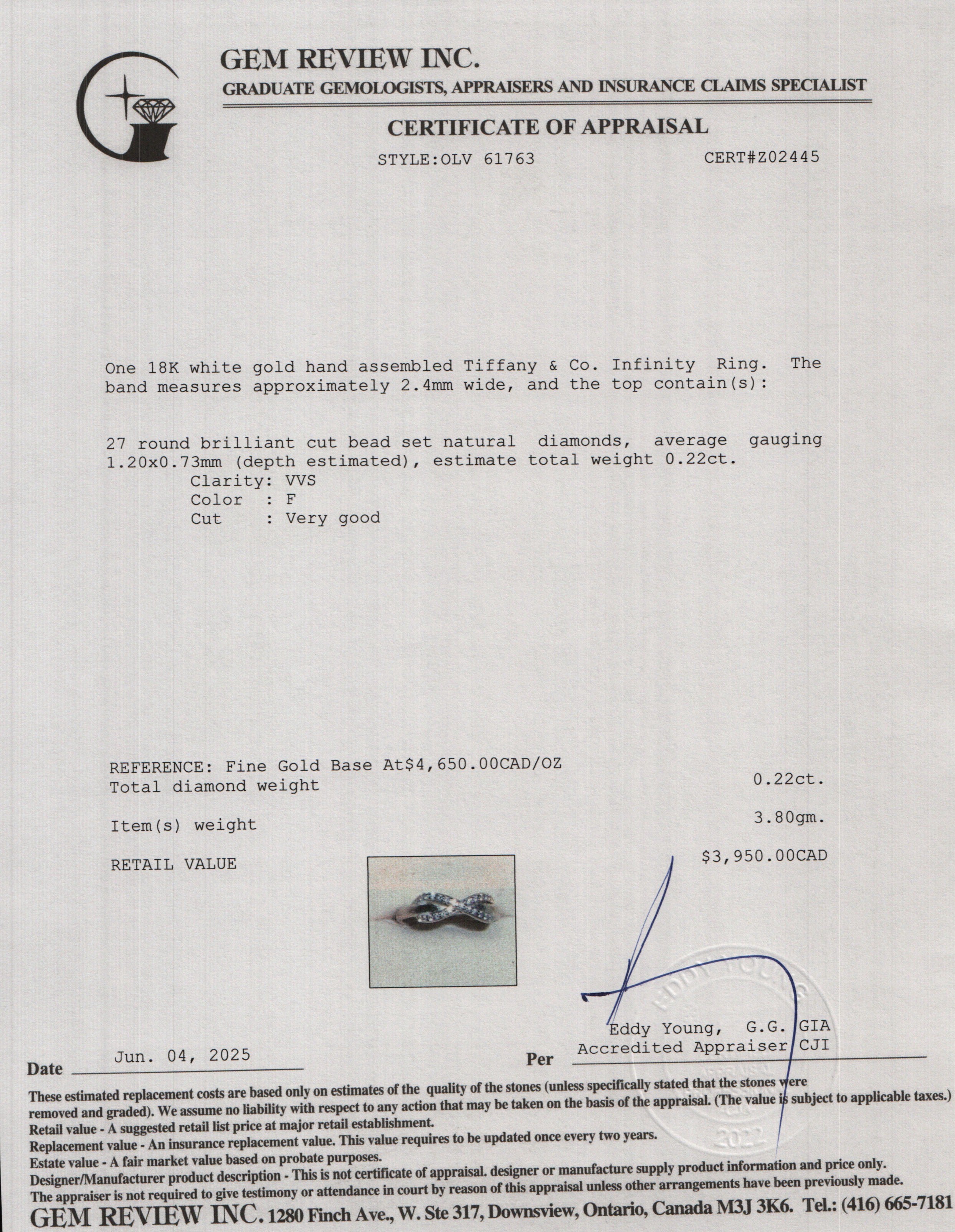 18k White Gold Diamond Infinity Ring, Size 5.5