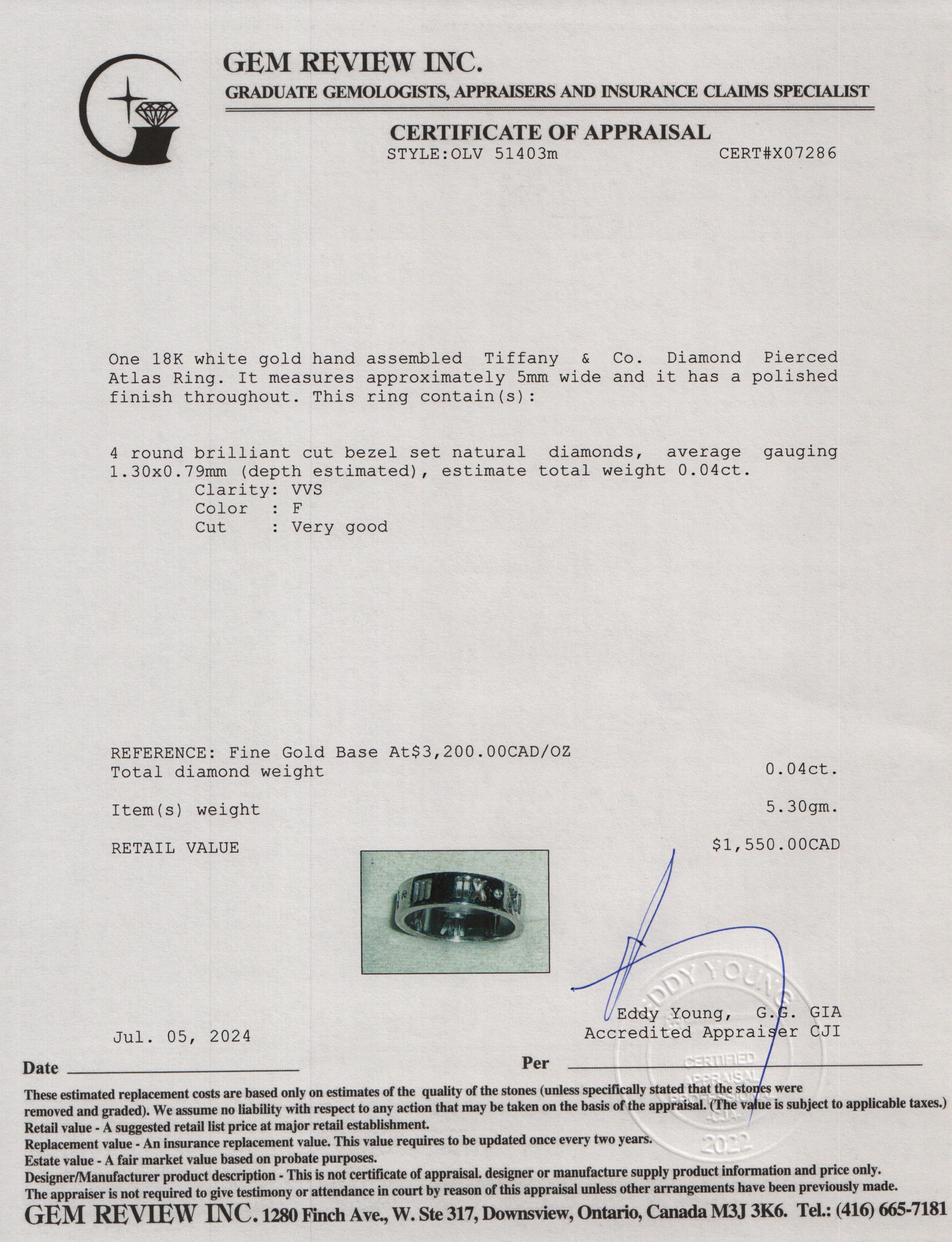 18k White Gold Diamond Pierced Atlas 5 MM Ring, Size 5.75