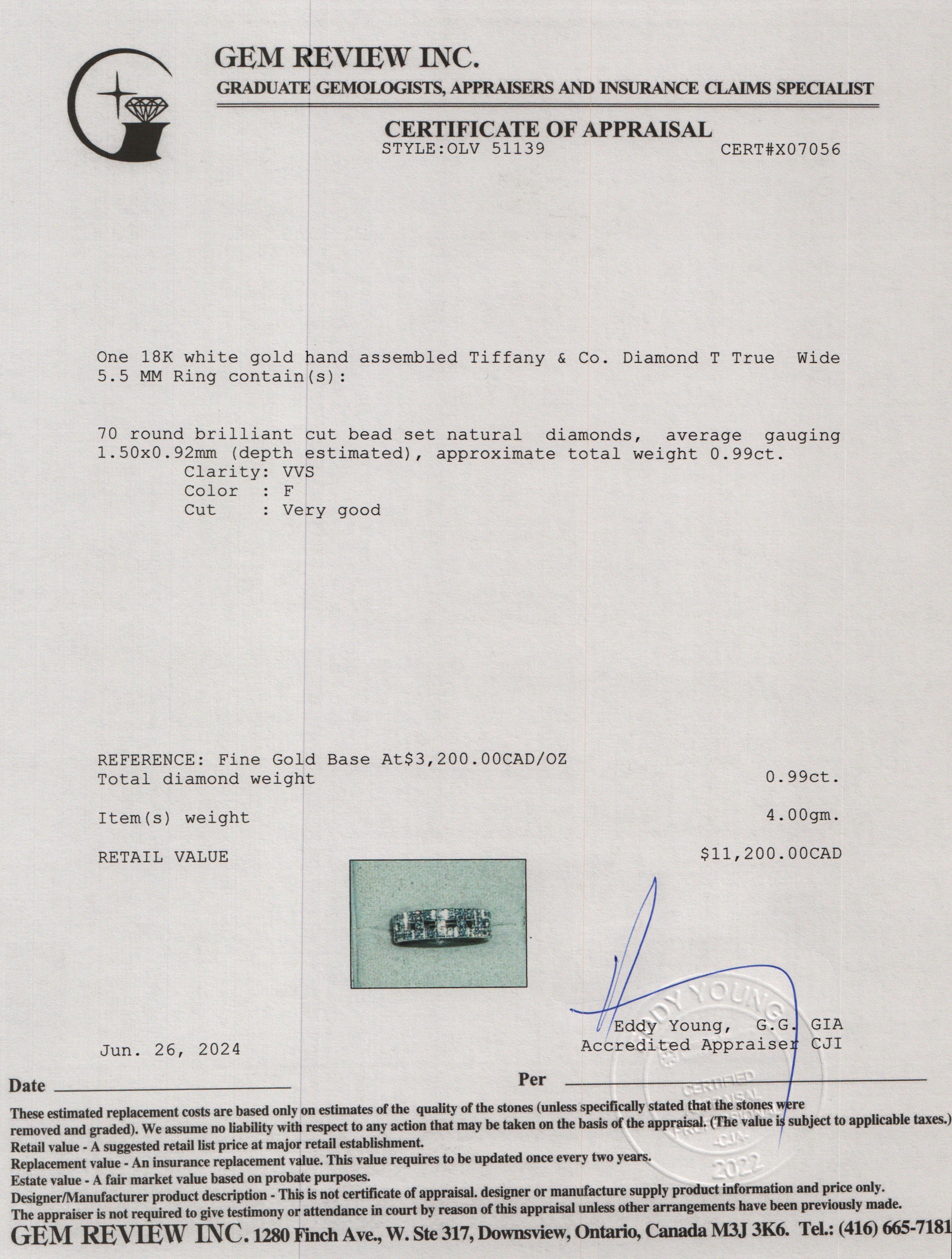 18k White Gold Diamond T True Wide 5.5 MM Ring, Size 4.75 w/ Box