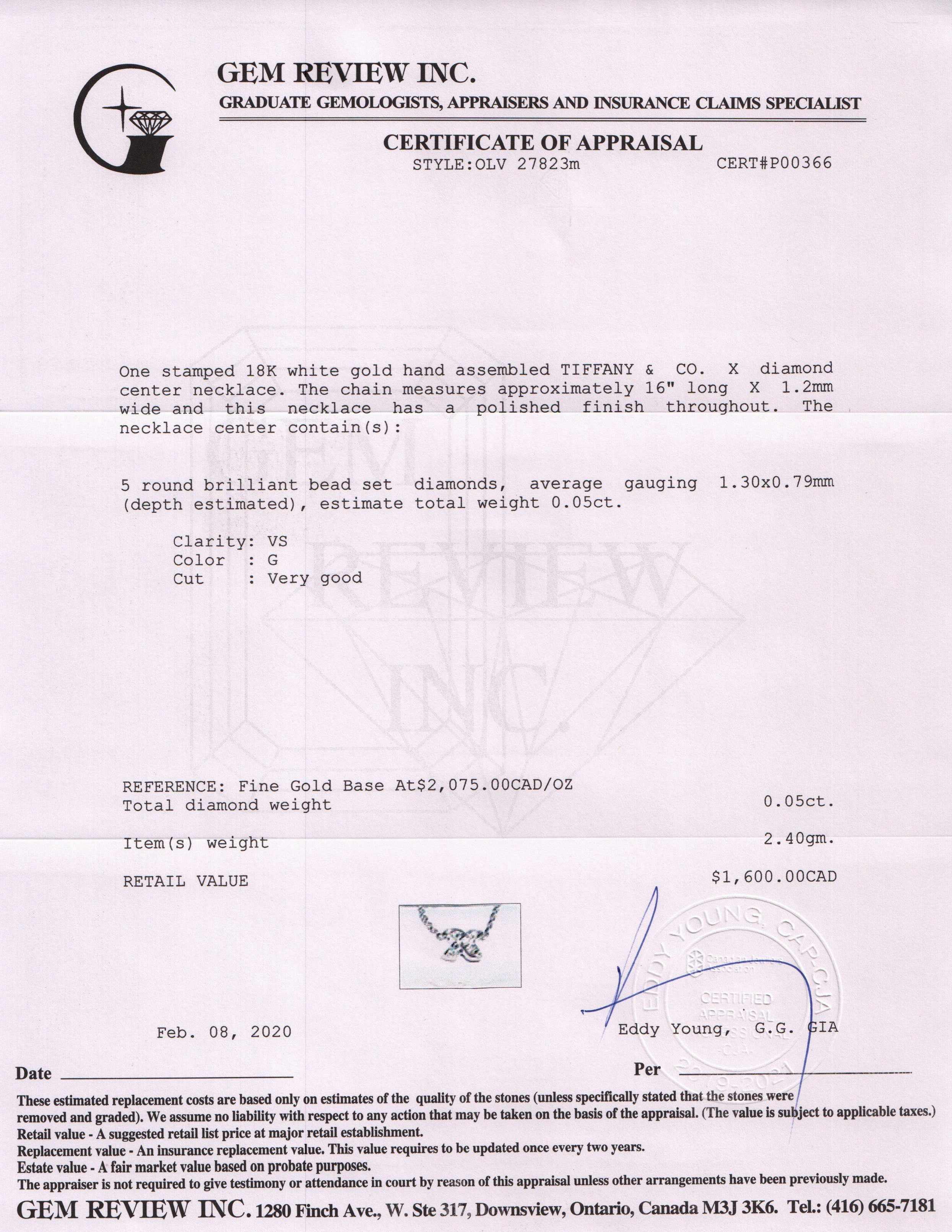 Tiffany & Co. Signature Diamond X Pendant Necklace
