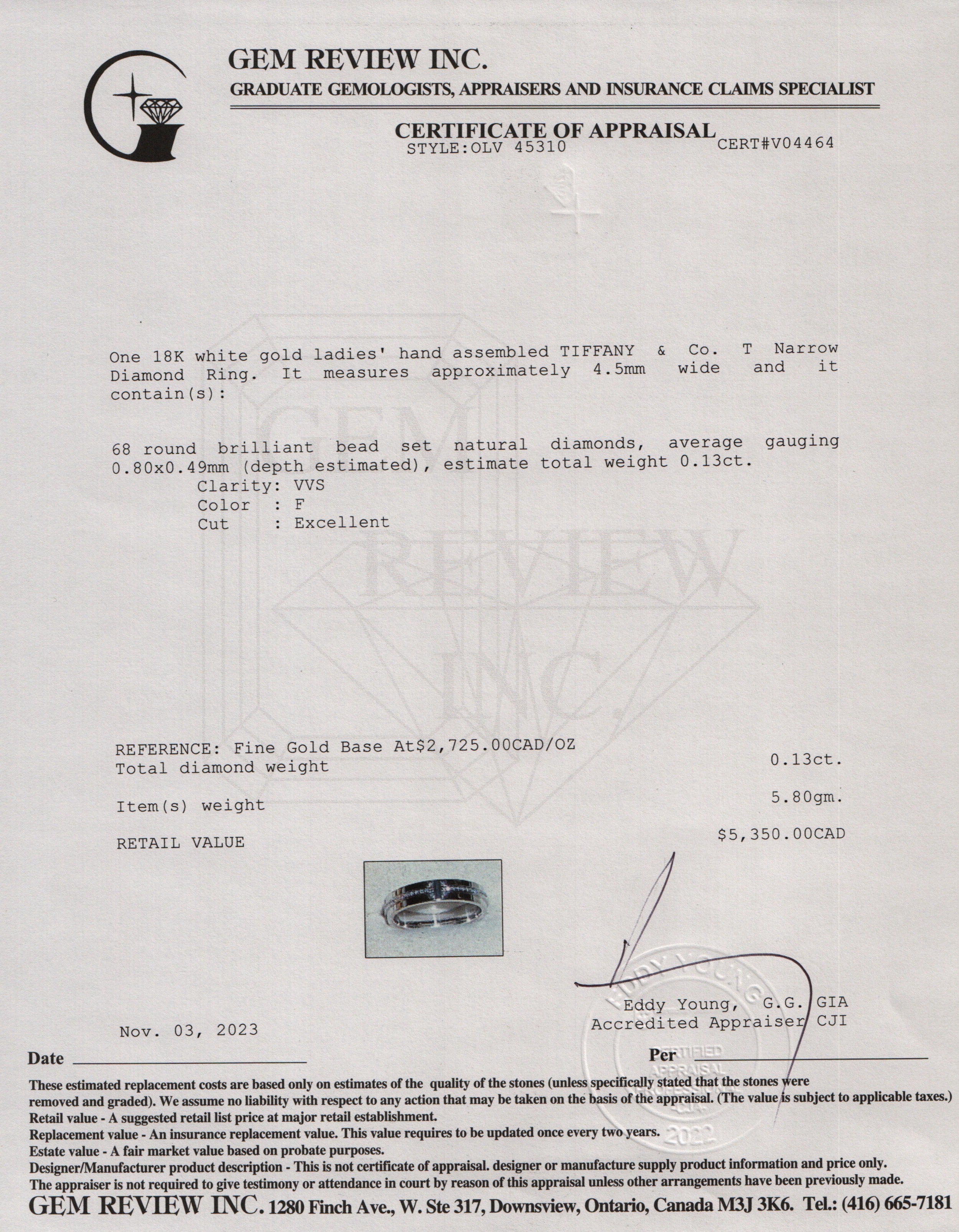 18k White Gold T Narrow Diamond 4.5MM Ring, Size 6.75