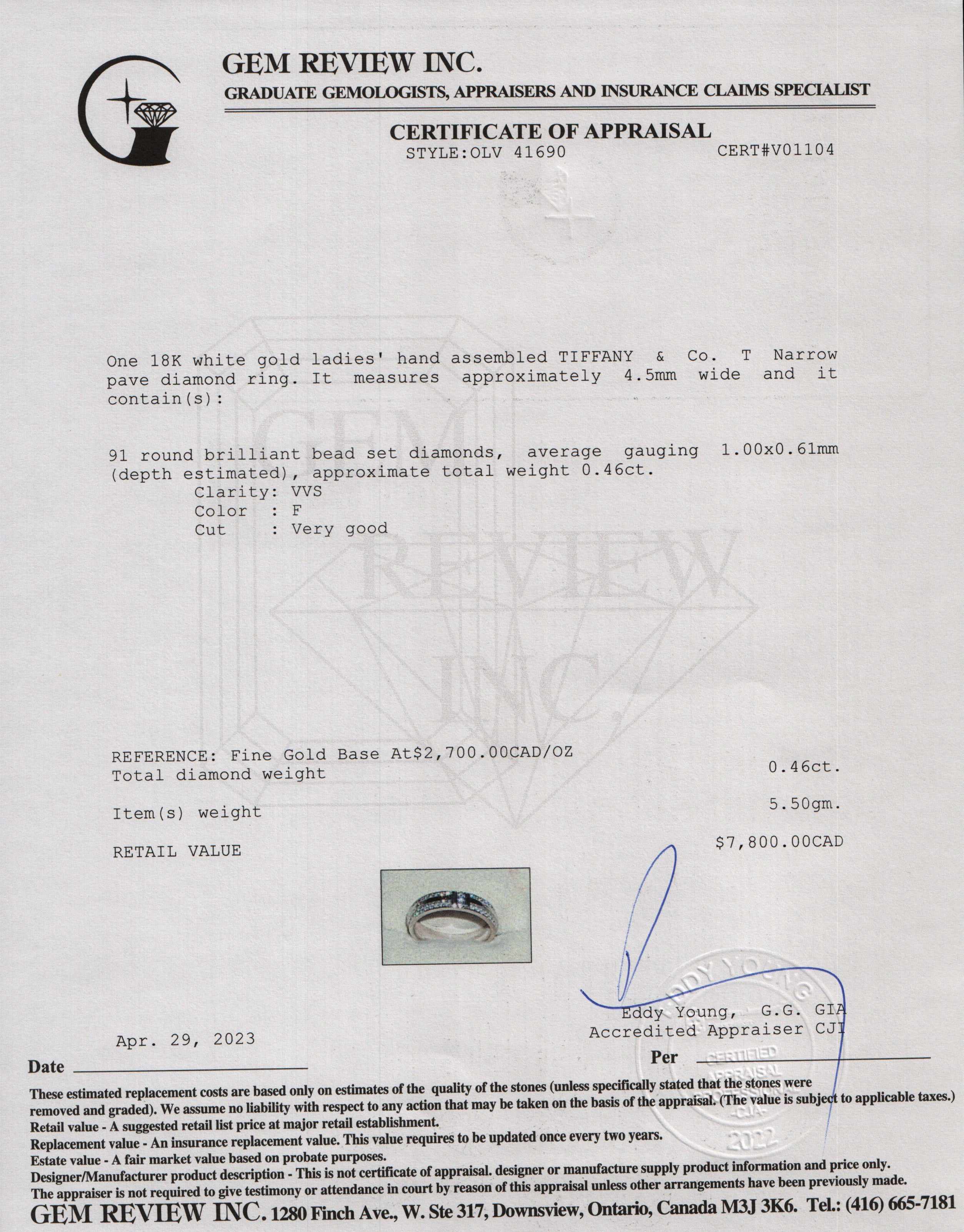 18k White Gold T Narrow Pave Diamond Ring w/ Box