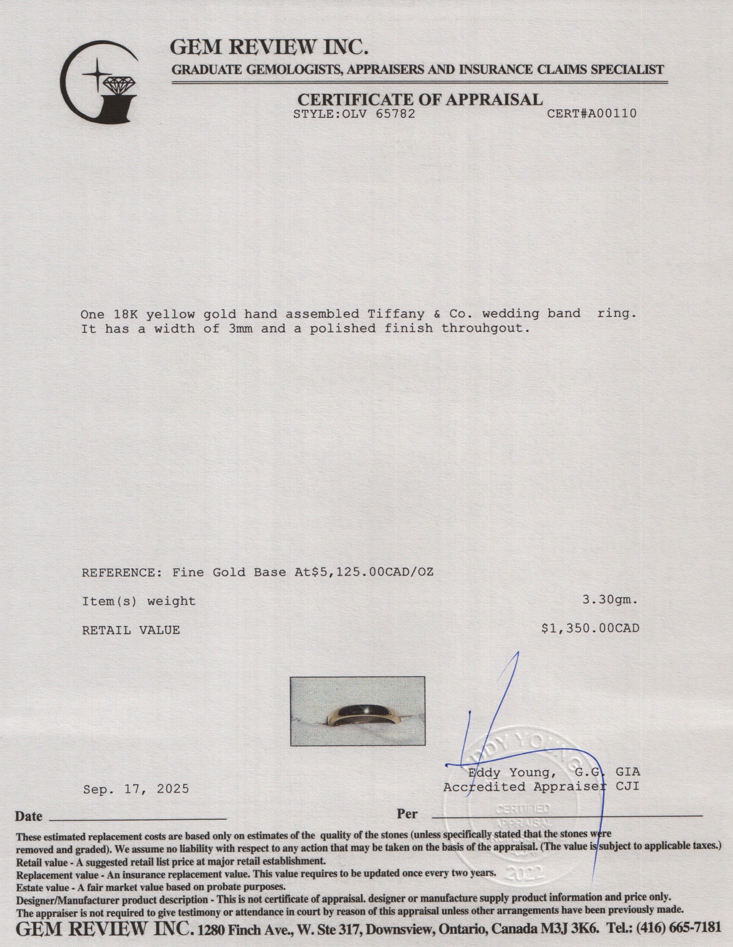 18k Yellow Gold 3 MM Wedding Band Ring, Size 4.25
