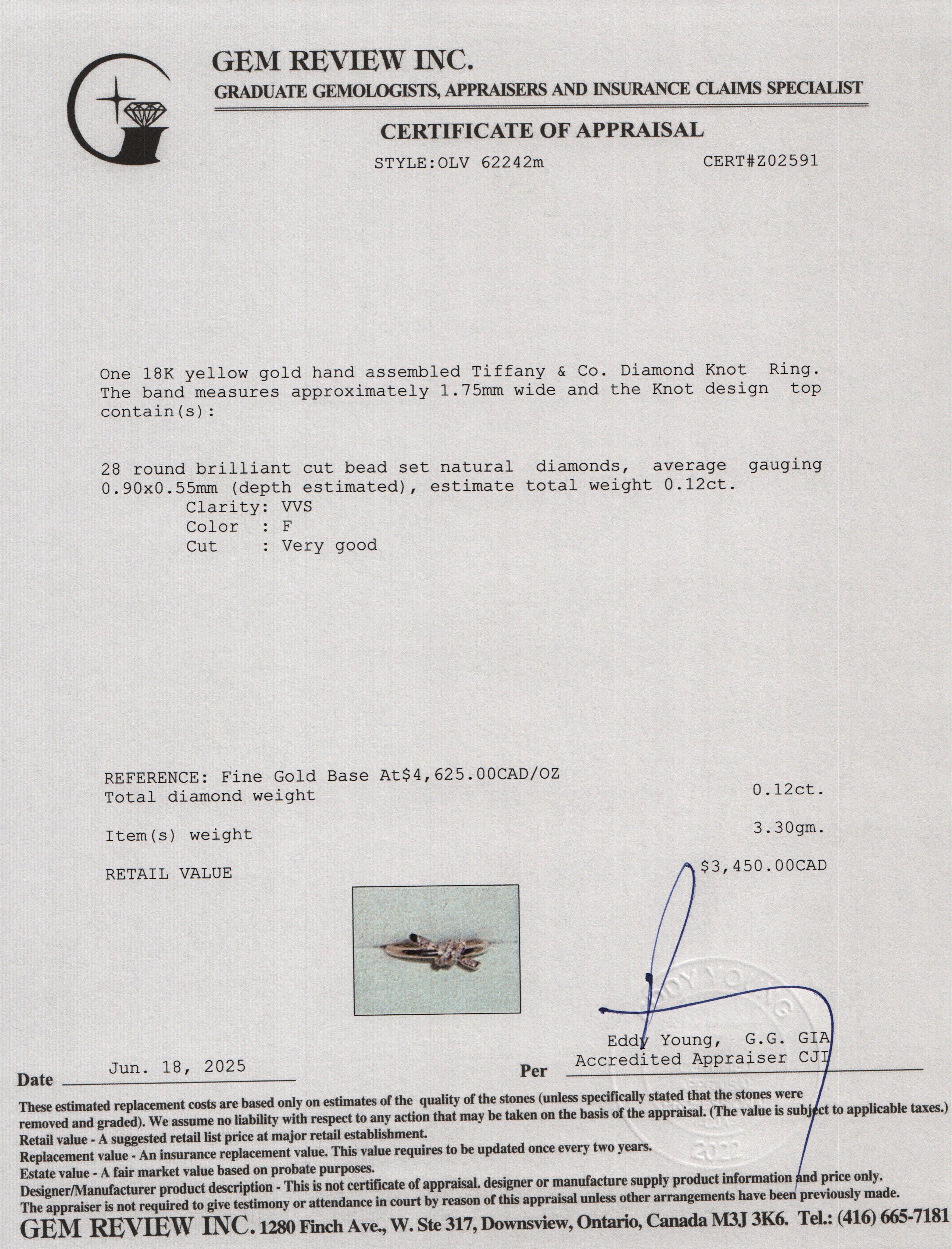 18k Yellow Gold Diamond Knot Ring, Size 6 w/ Box