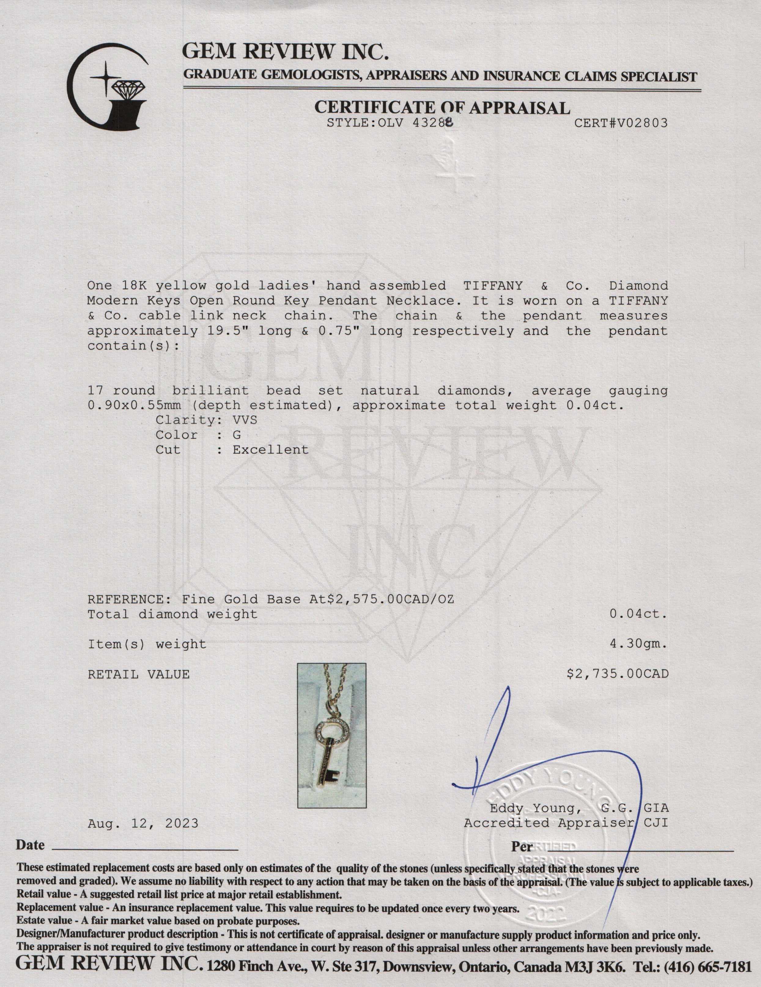 Tiffany & Co. 18k Yellow Gold Diamond Mini Modern Keys Open Round Key Pendant Necklace