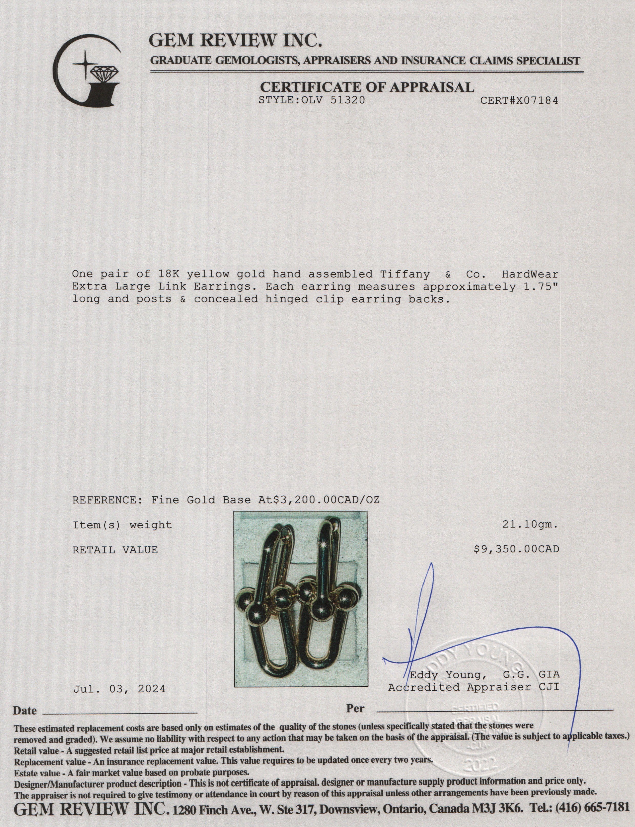 18k Yellow Gold HardWear Extra Large Link Earrings w/ Box & Receipt