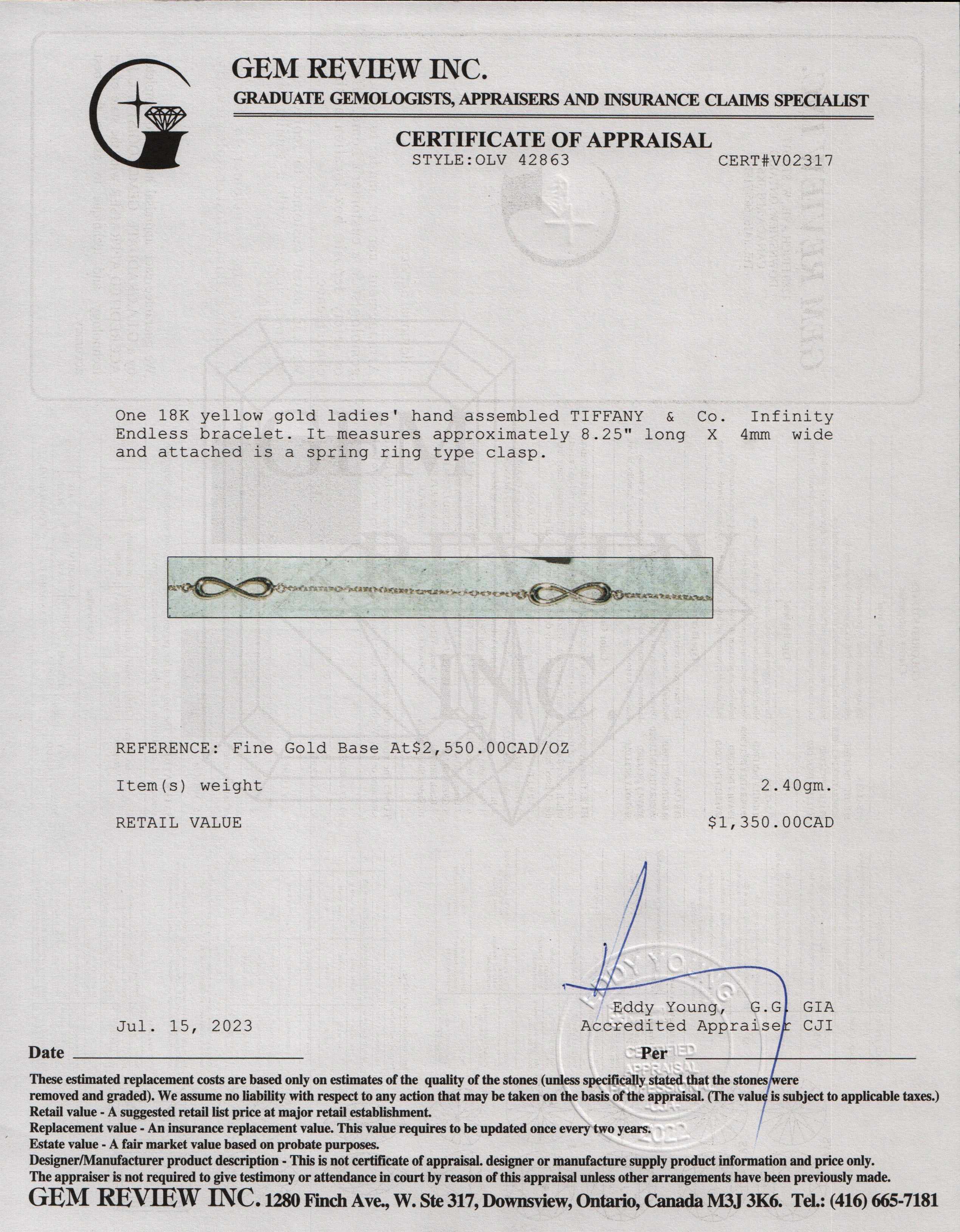 - Signature/Hallmarks: Tiffany & Co. AU750