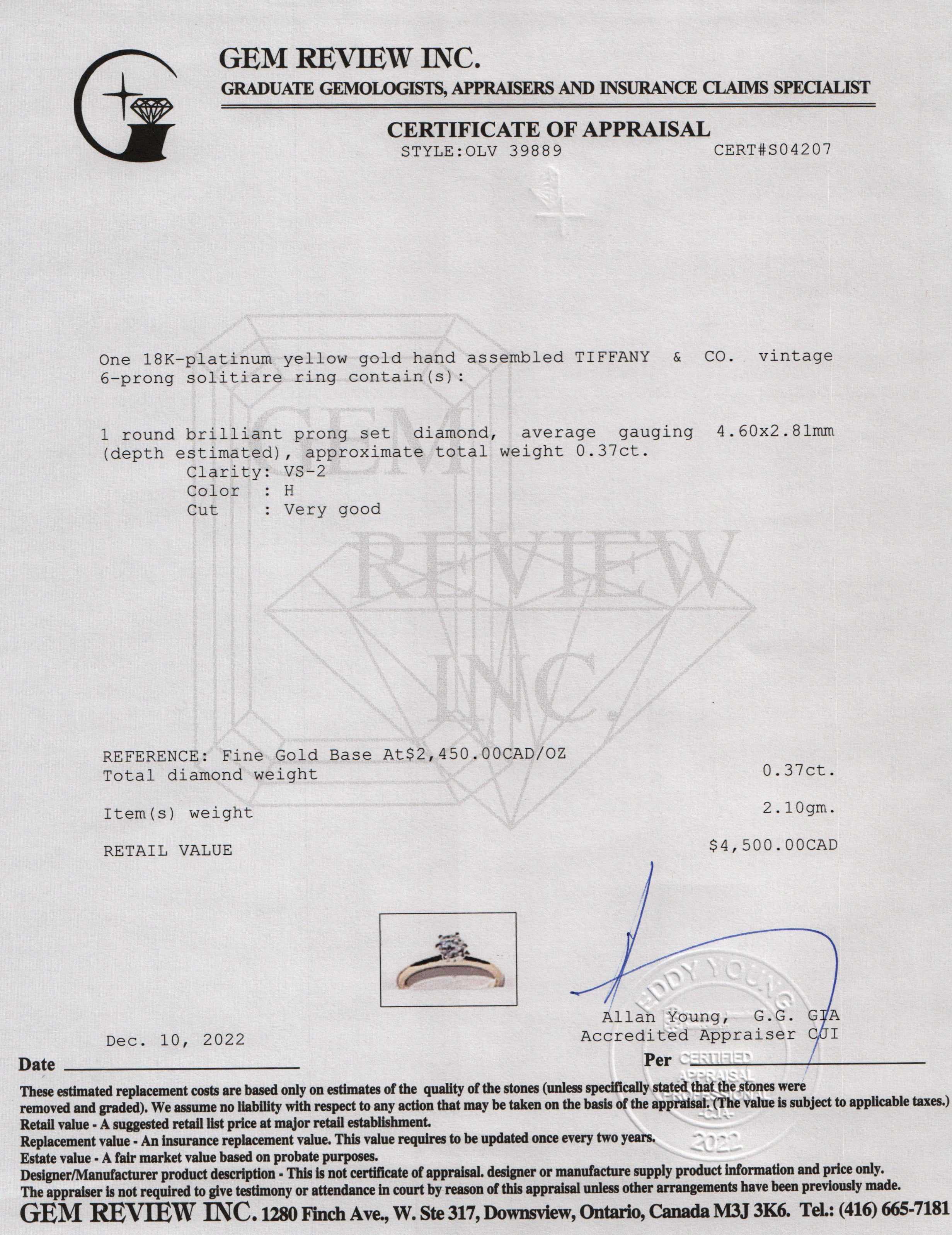 Tiffany & Co. 18k Yellow Gold Solitaire 0.37 ct. Diamond Engagement Ring