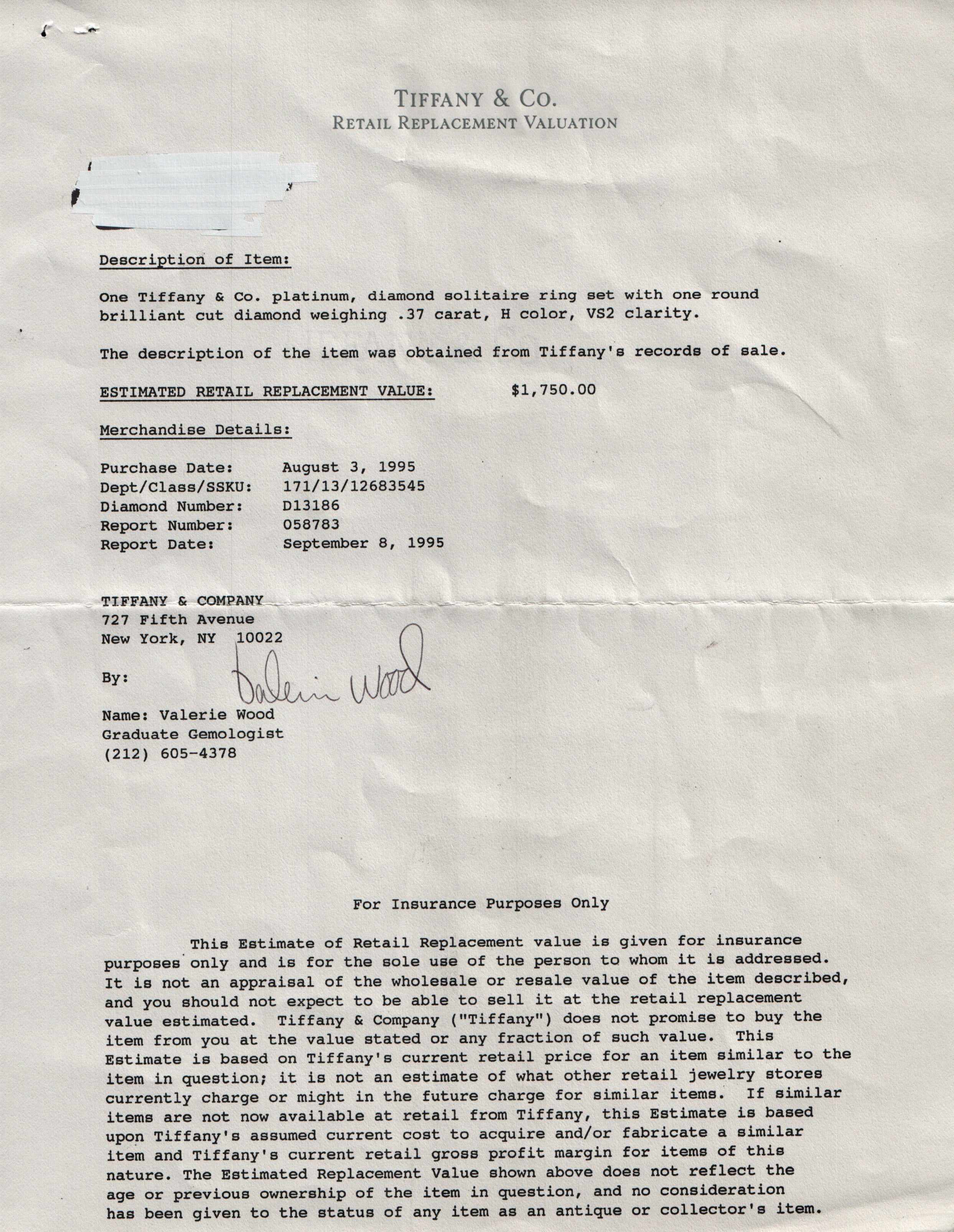 Included Items: Original Tiffany & Co. Box, Paperwork & Diamond Certificate and Gem Review Appraisal
