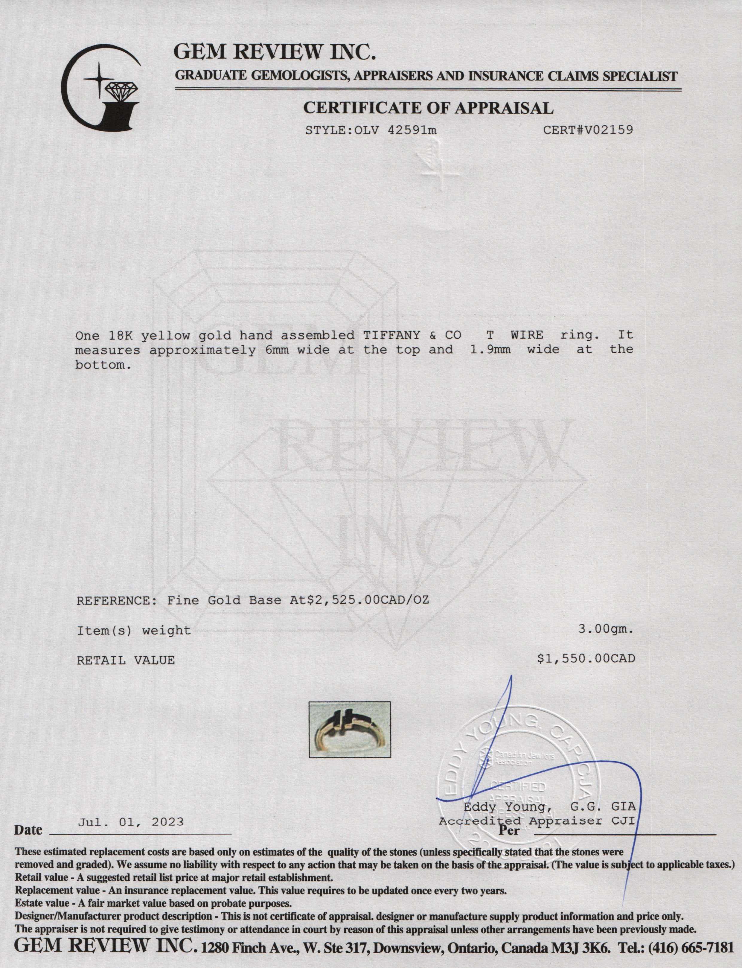 Tiffany & Co. 18k Yellow Gold T Wire Ring