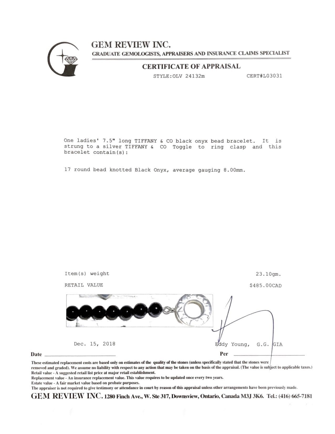 Tiffany & Co. Onyx Bead Toggle Bracelet
