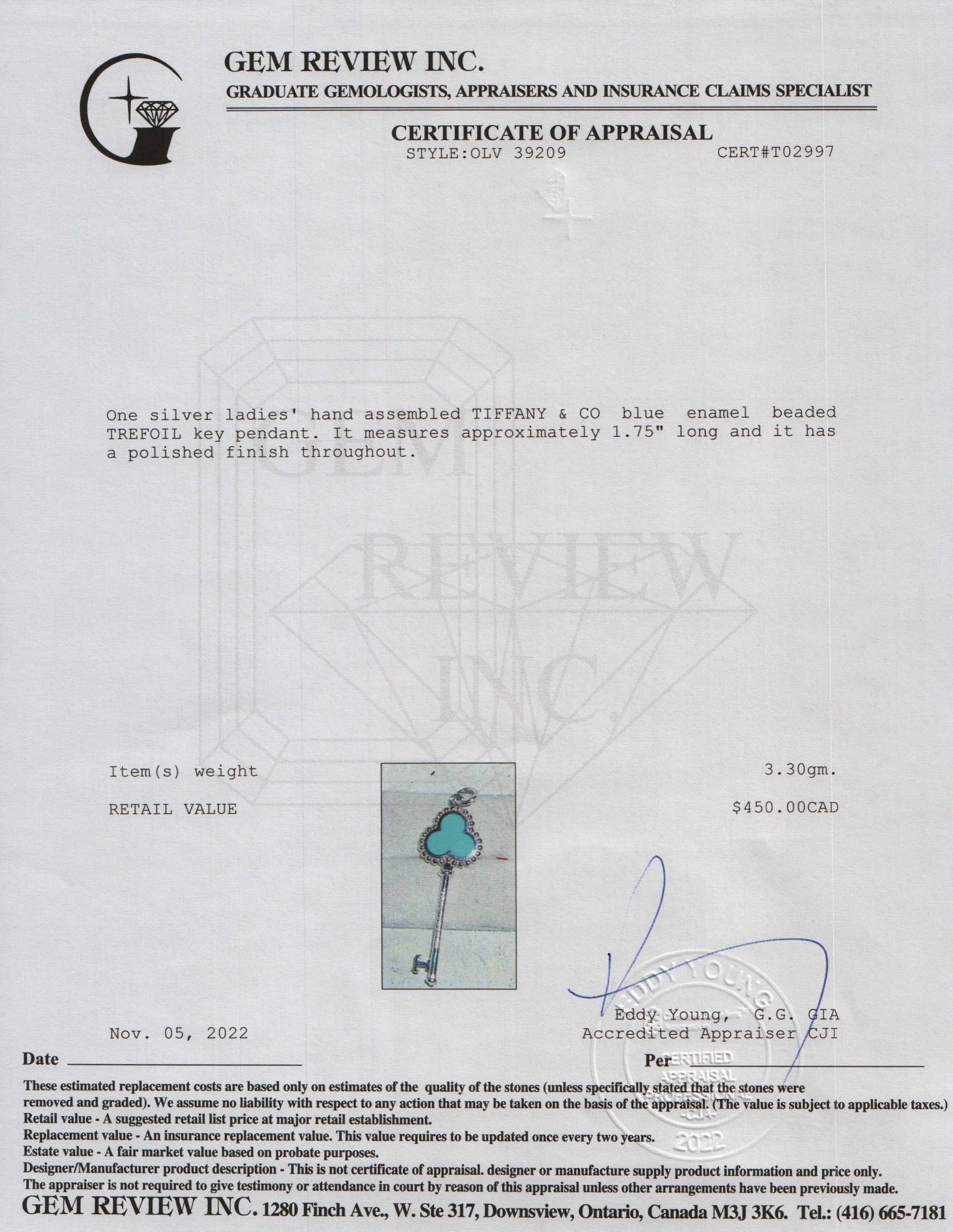 Tiffany & Co. Blue Enamel Beaded Trefoil Key Pendant