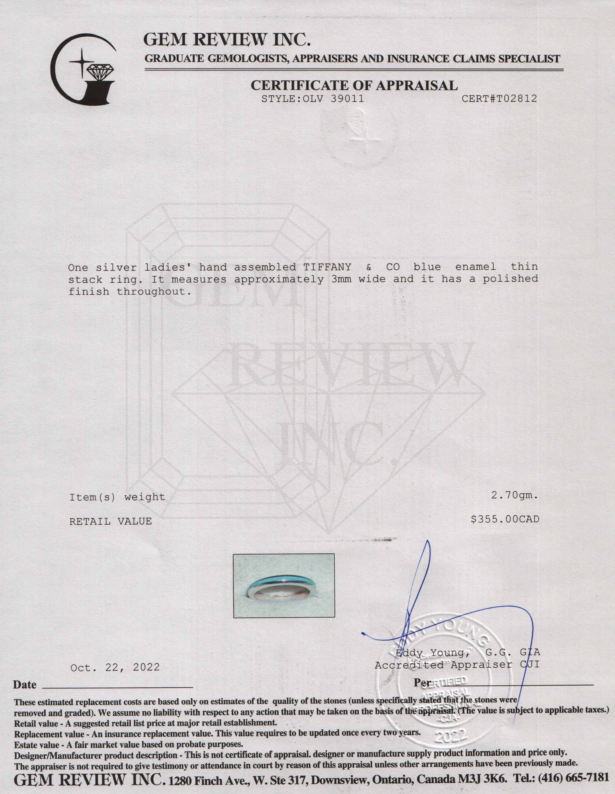 Tiffany & Co. Blue Enamel Thin Stack Ring