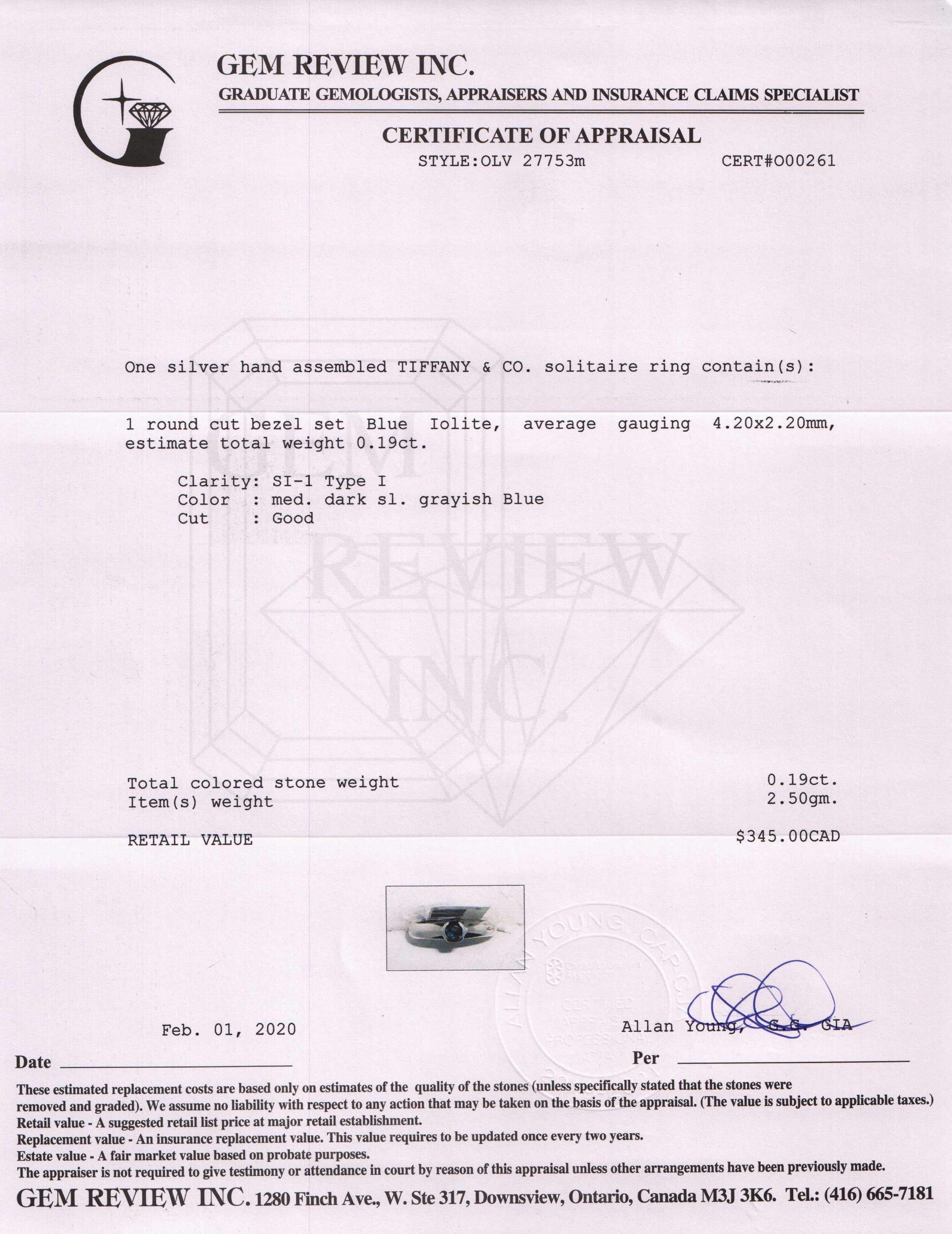 - 1 Round Cut Blue Iolite Weighing Approximately 0.19 ct.