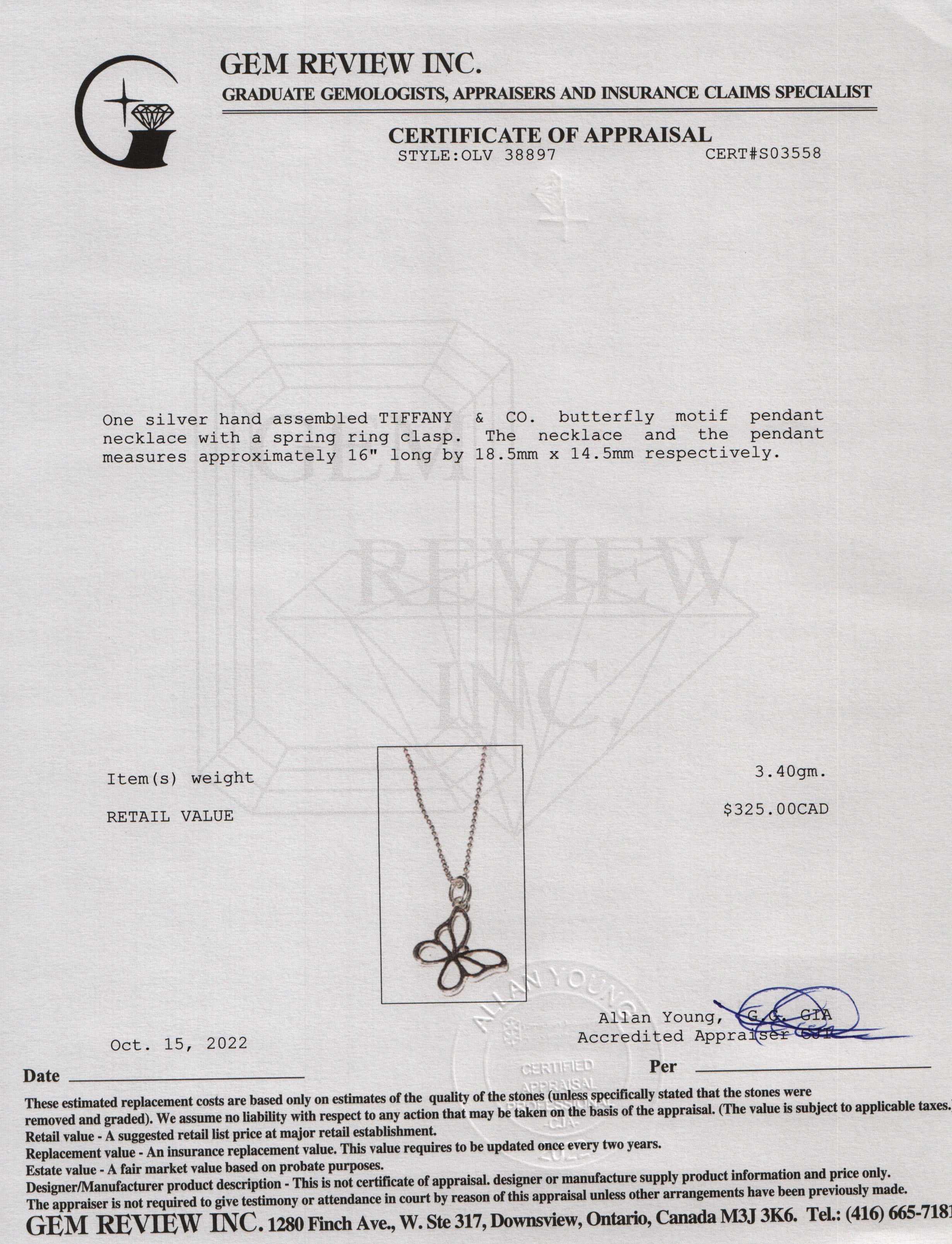 Tiffany & Co. Butterfly Pendant Necklace