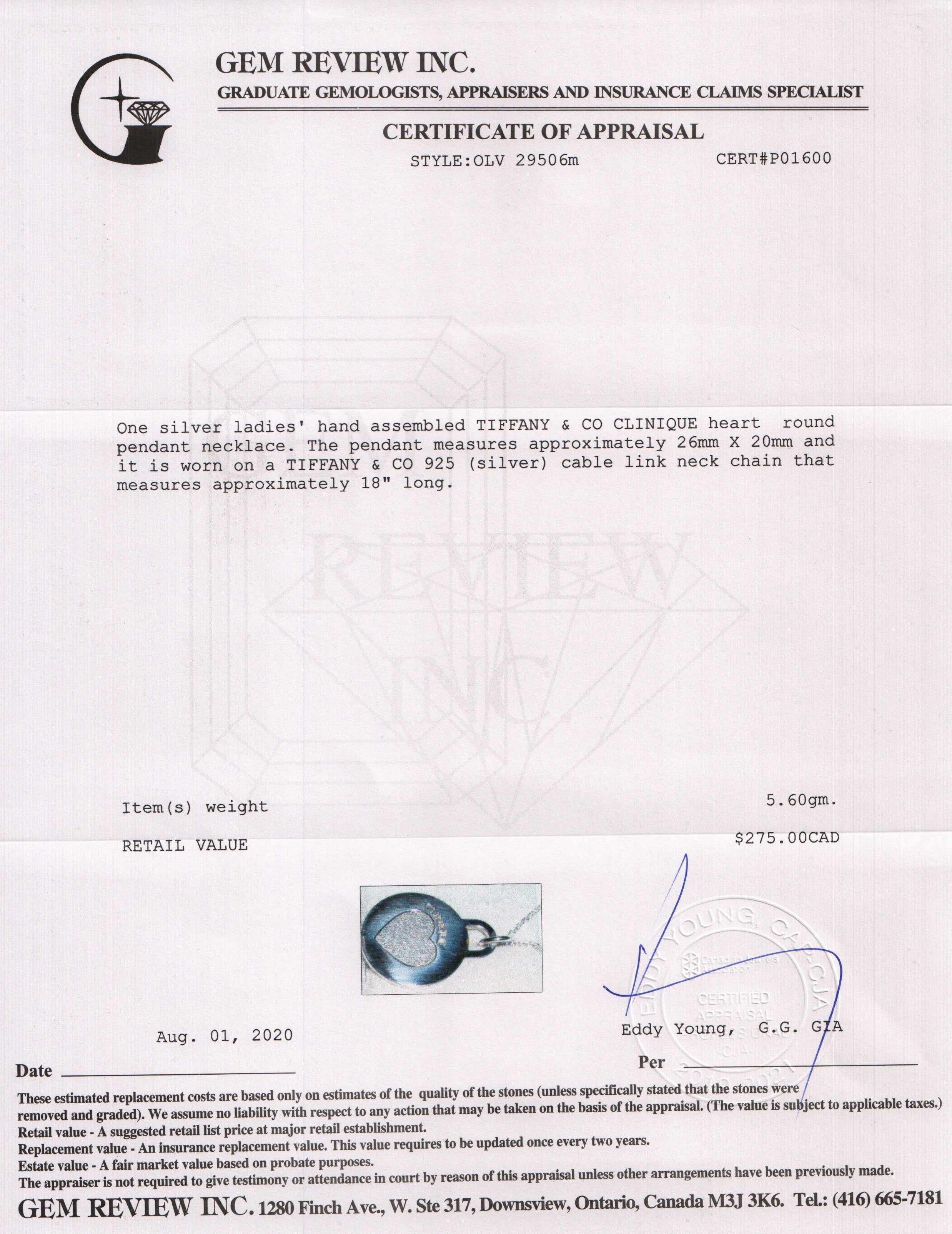 Tiffany & Co. Clinique Heart Round Pendant Necklace