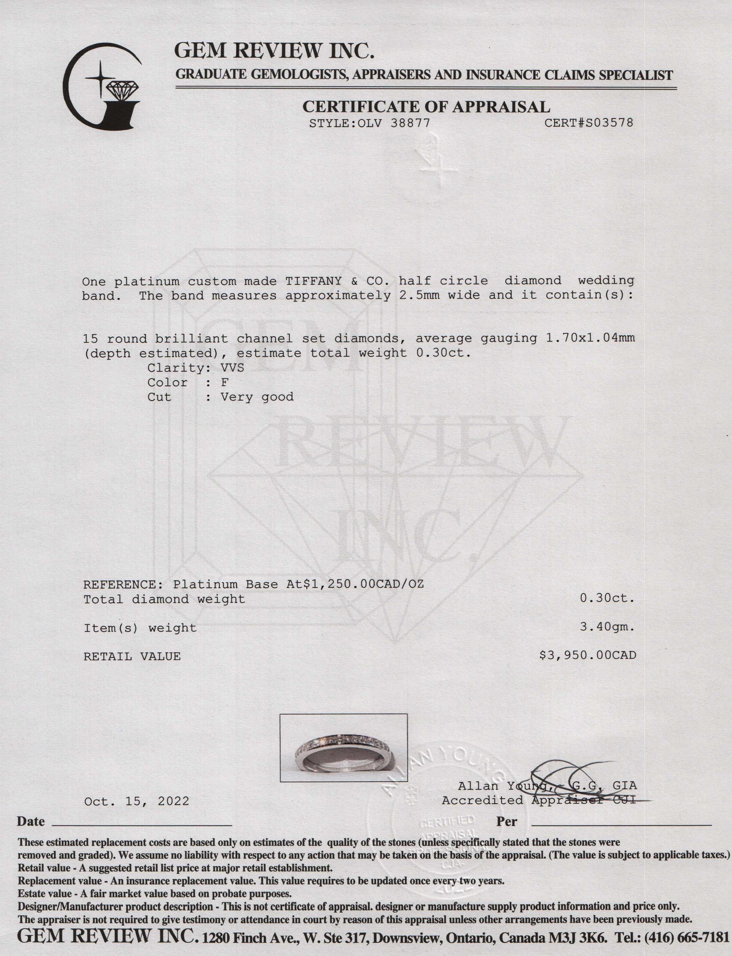 Tiffany & Co. Diamond Half Circle Wedding Band Ring