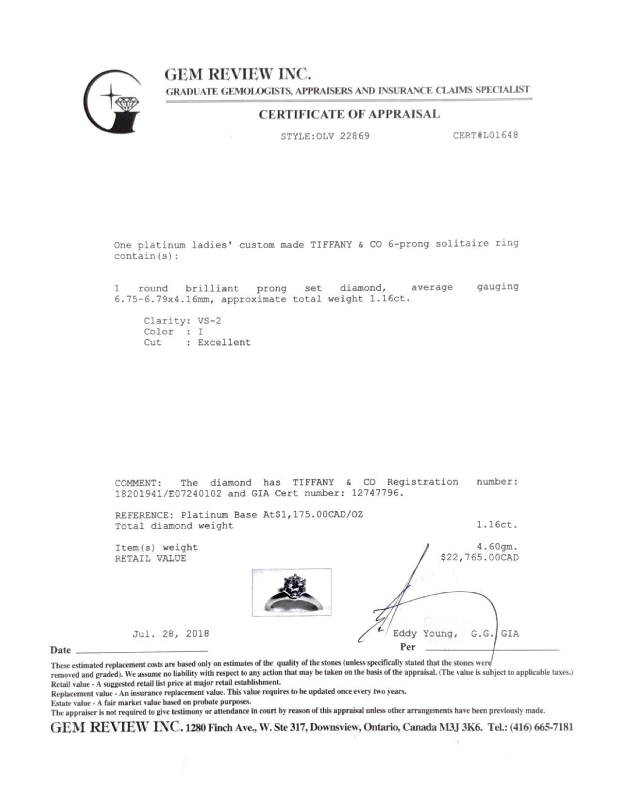Tiffany & Co. Diamond Solitaire Engagement Ring