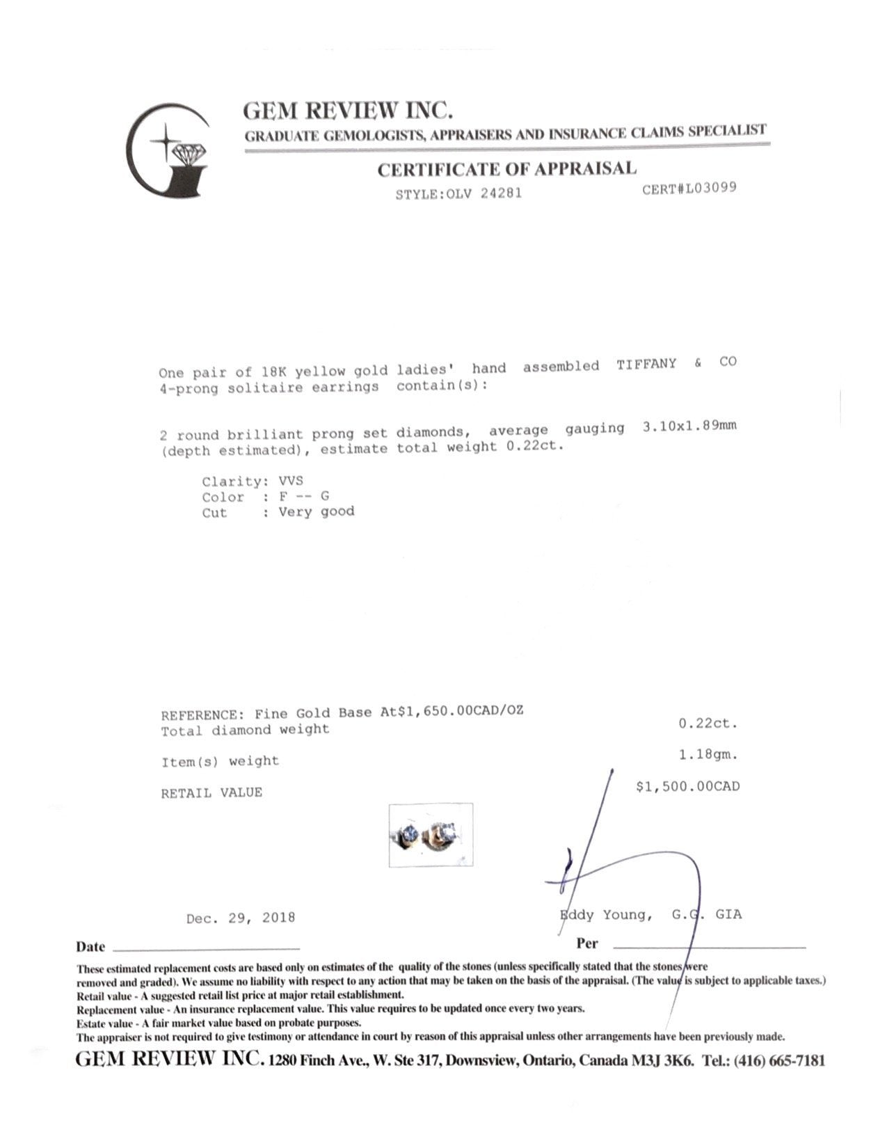 • Signature/Hallmarks: T & Co. Au750
