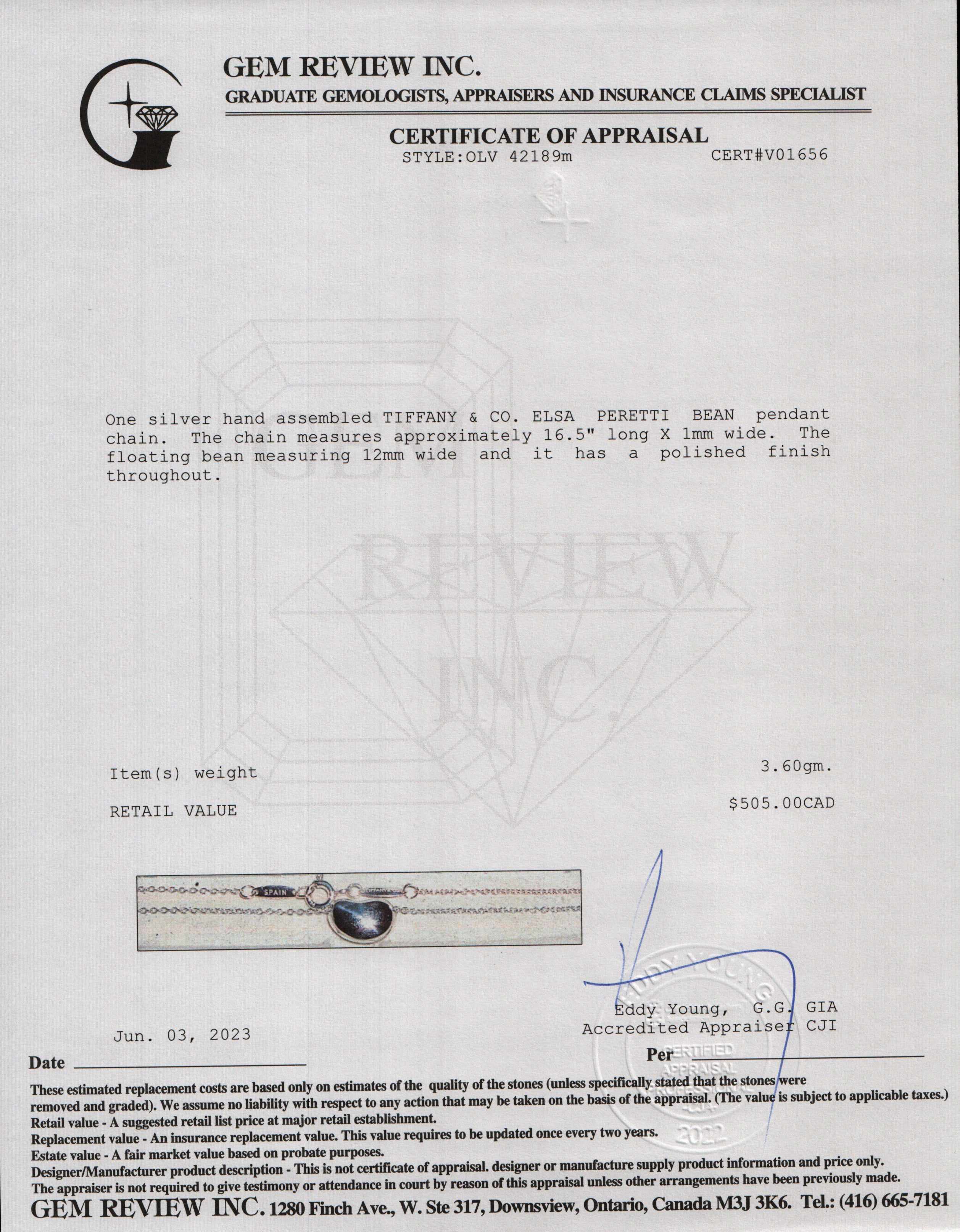 Tiffany & Co. Elsa Peretti 12 MM Bean Pendant Necklace