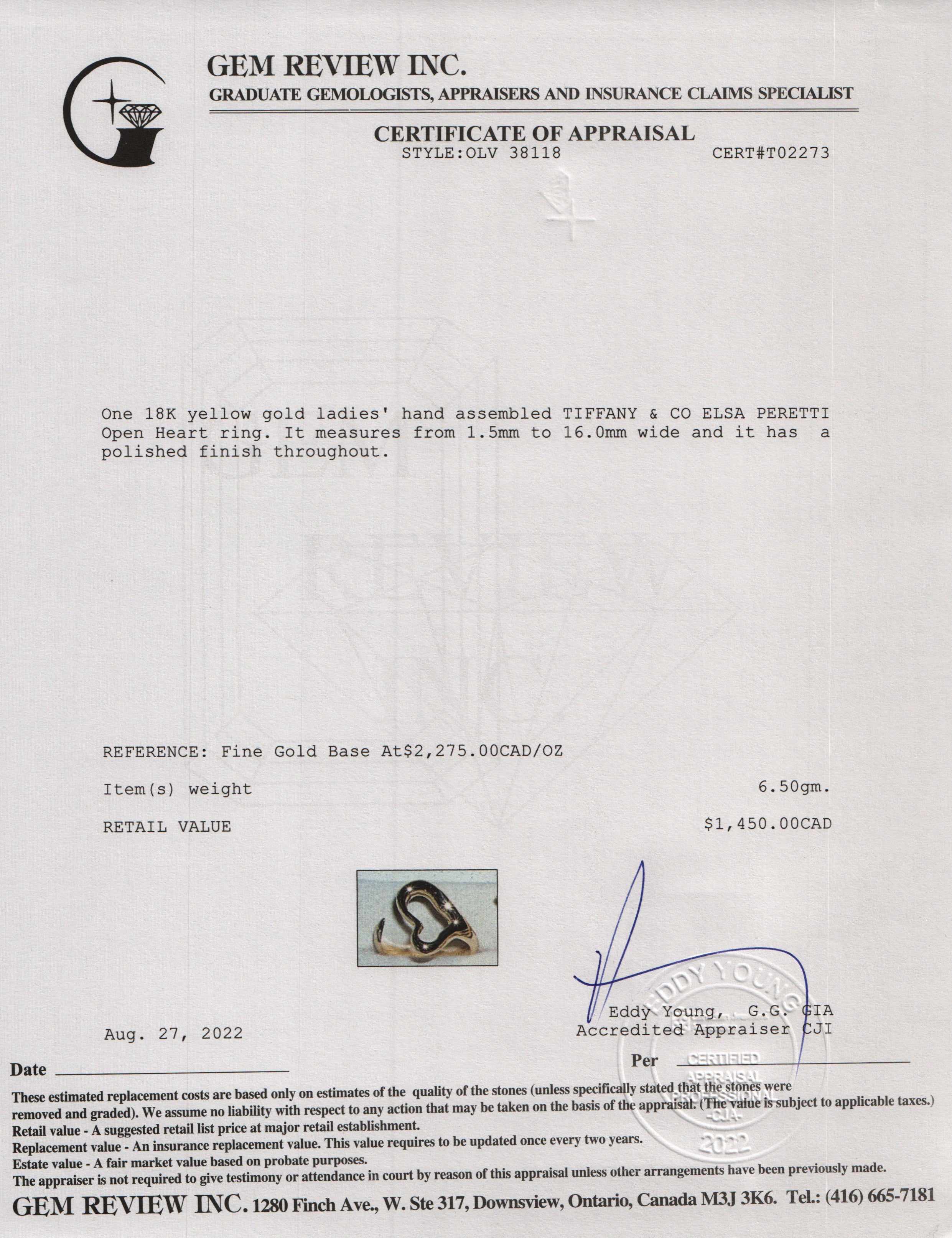 Tiffany & Co. Elsa Peretti 18k Gold Open Heart Ring