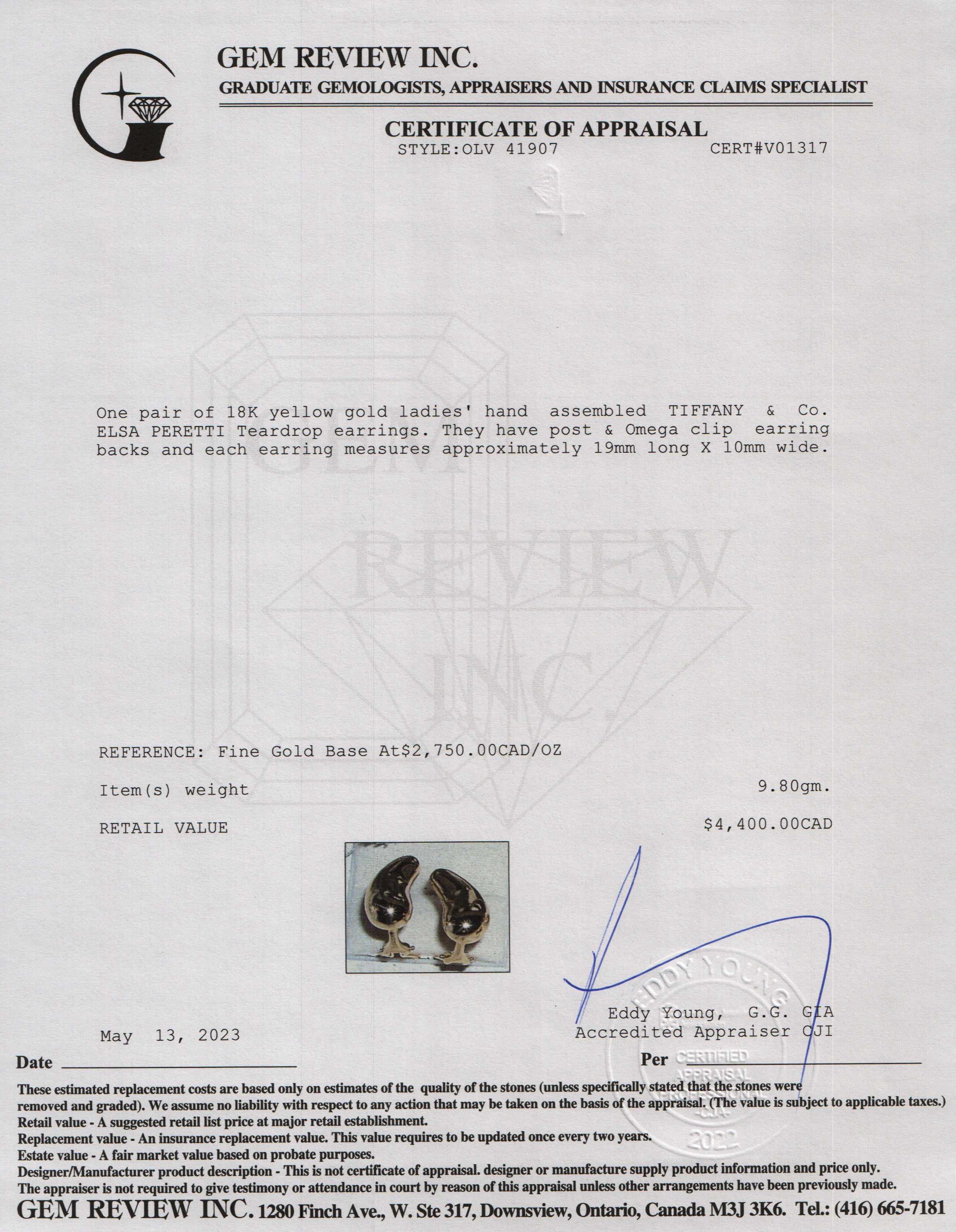 Tiffany & Co. Elsa Peretti 18k Gold Vintage Teardrop Earrings