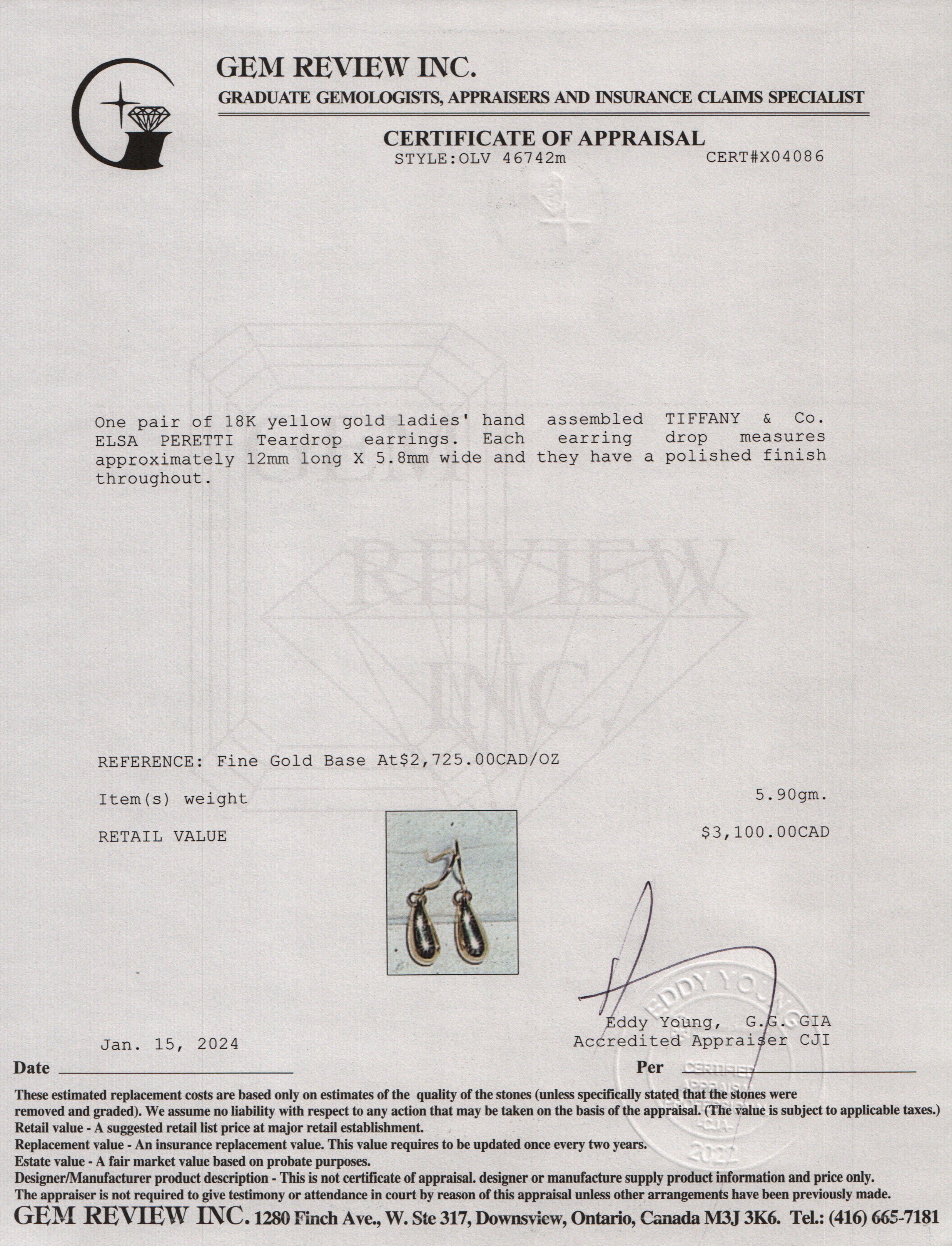 Elsa Peretti 18k Yellow Gold 12 MM Teardrop Earrings