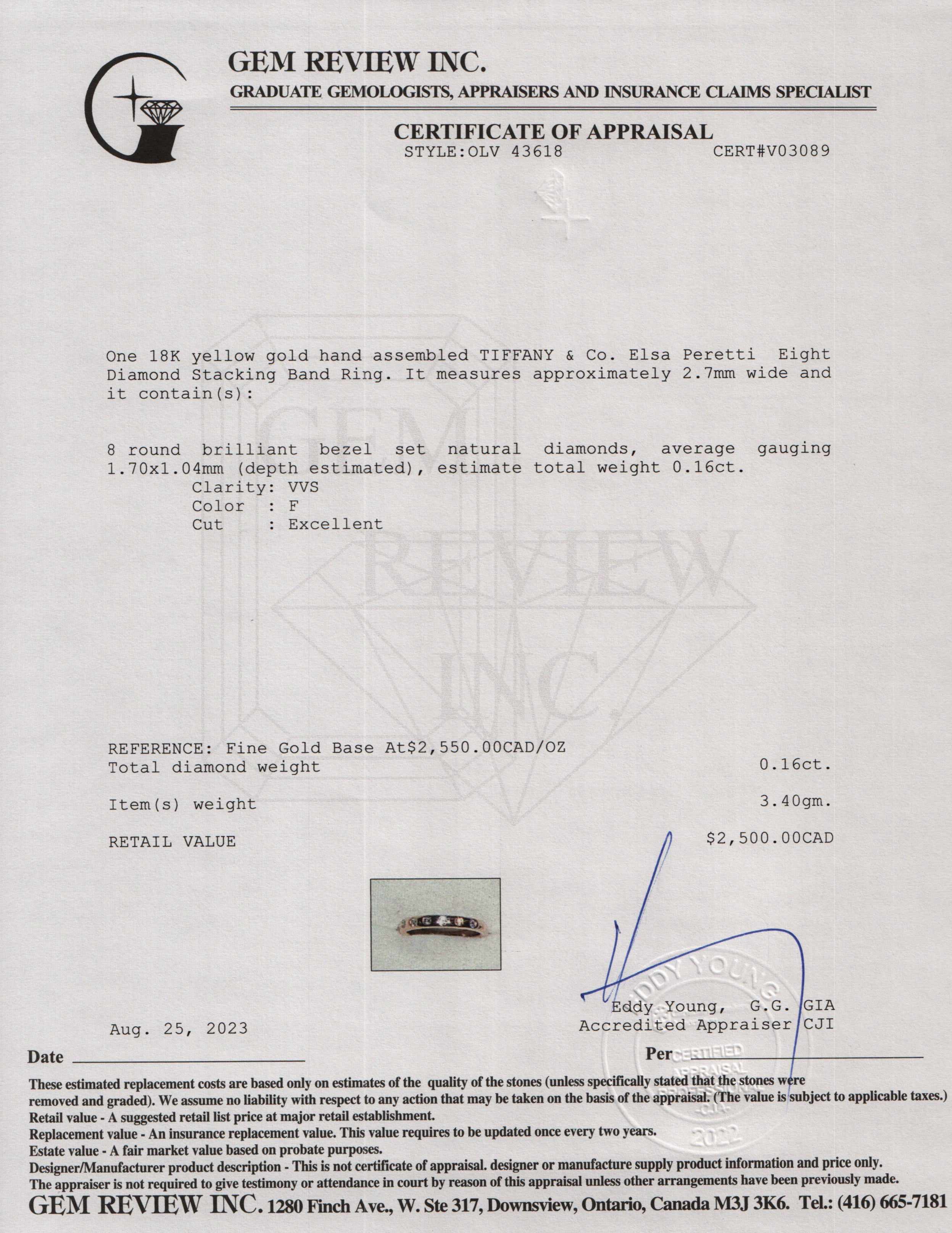Elsa Peretti 18k Yellow Gold Eight Diamond Stacking Band Ring w/ Box & Receipt