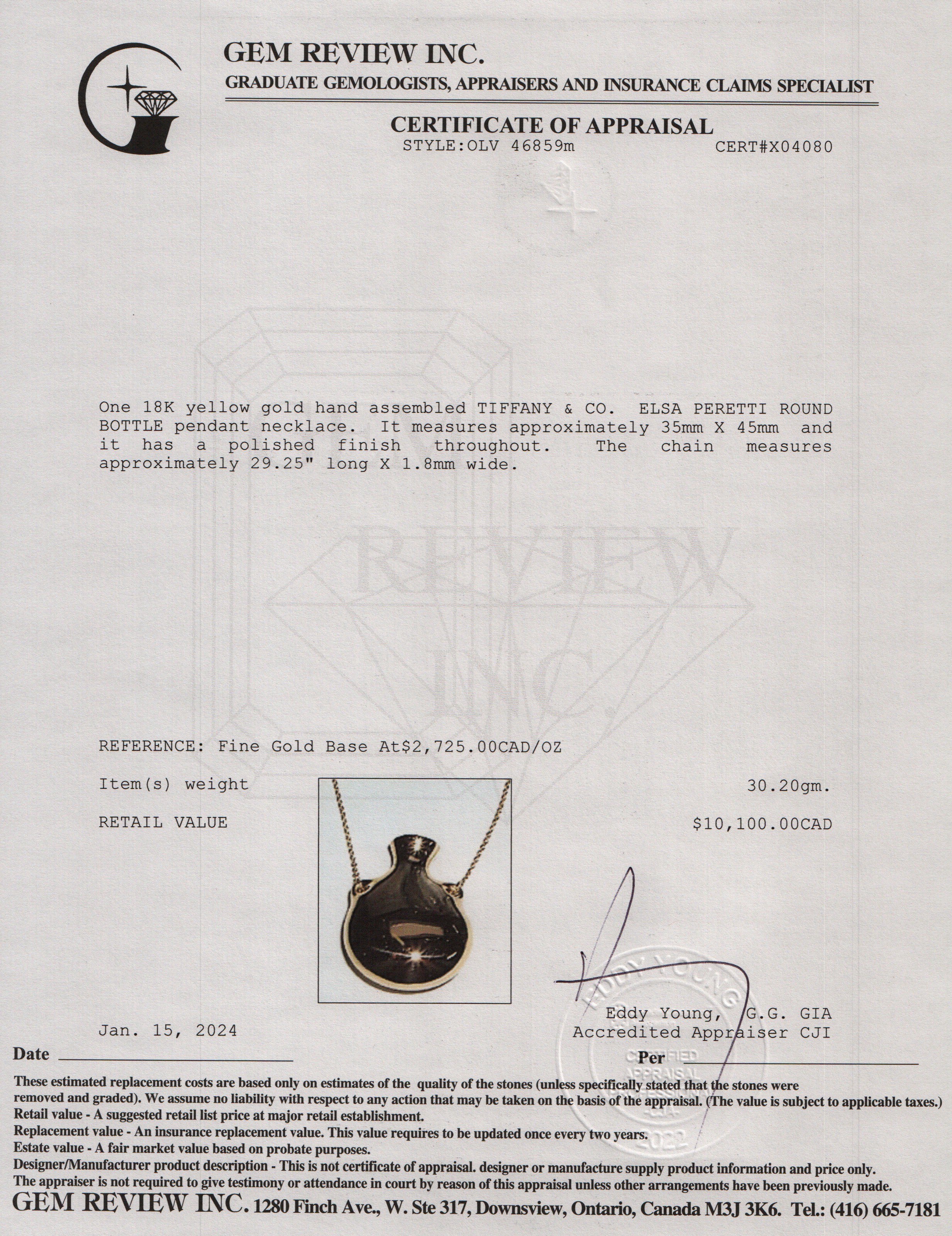 Elsa Peretti 18k Yellow Gold Large Open Bottle Pendant Necklace