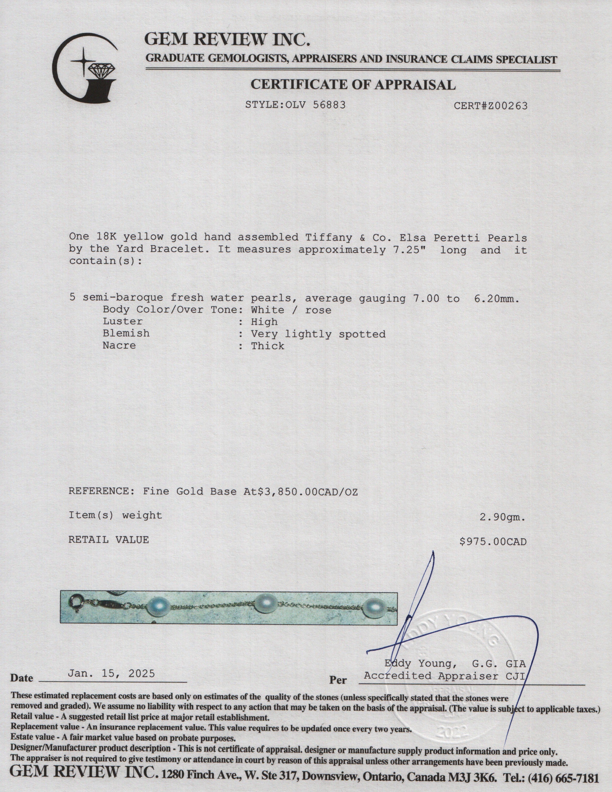 Length 7.25", Pearls 6-6.5 mm