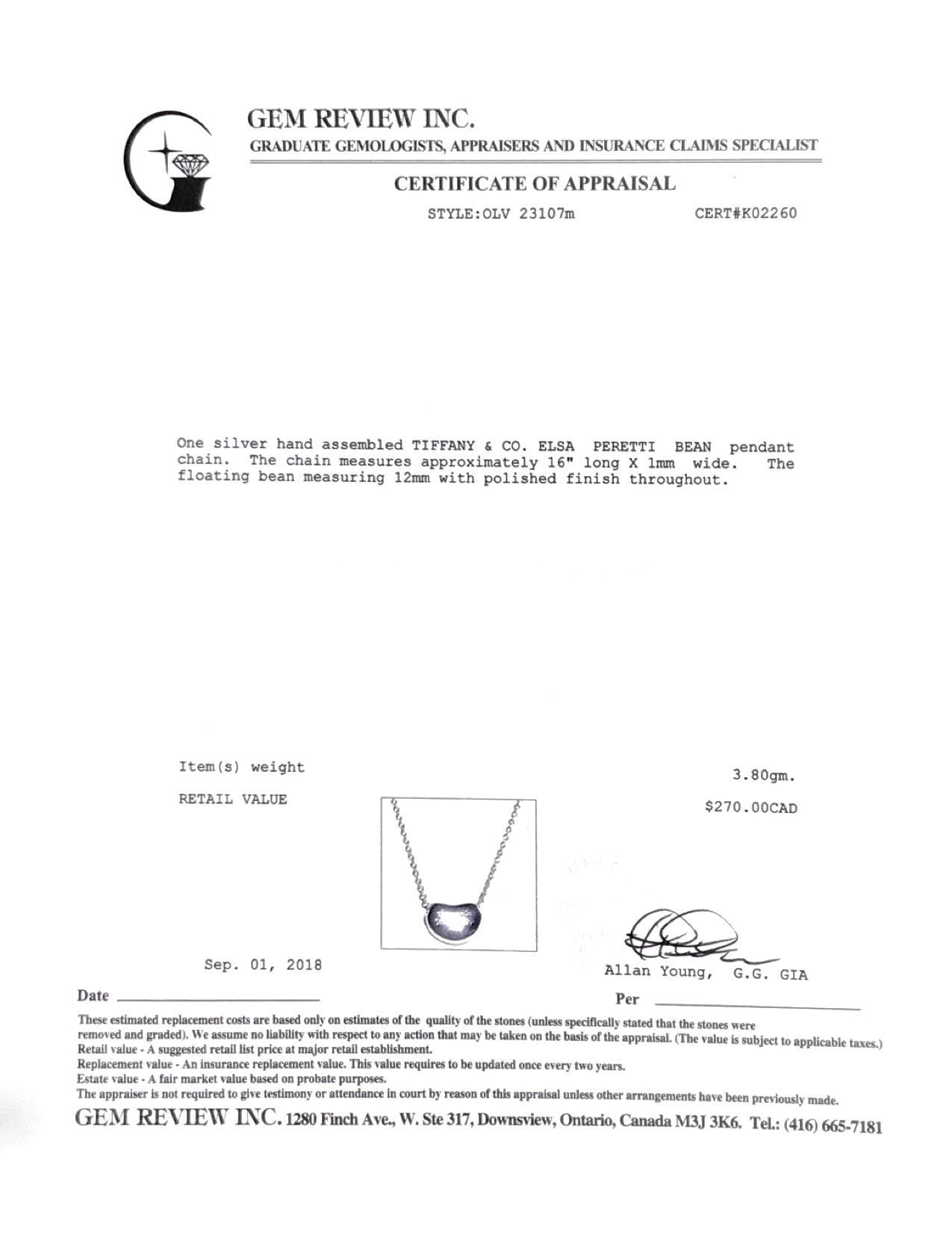 Tiffany & Co. Elsa Peretti Bean Pendant Necklace
