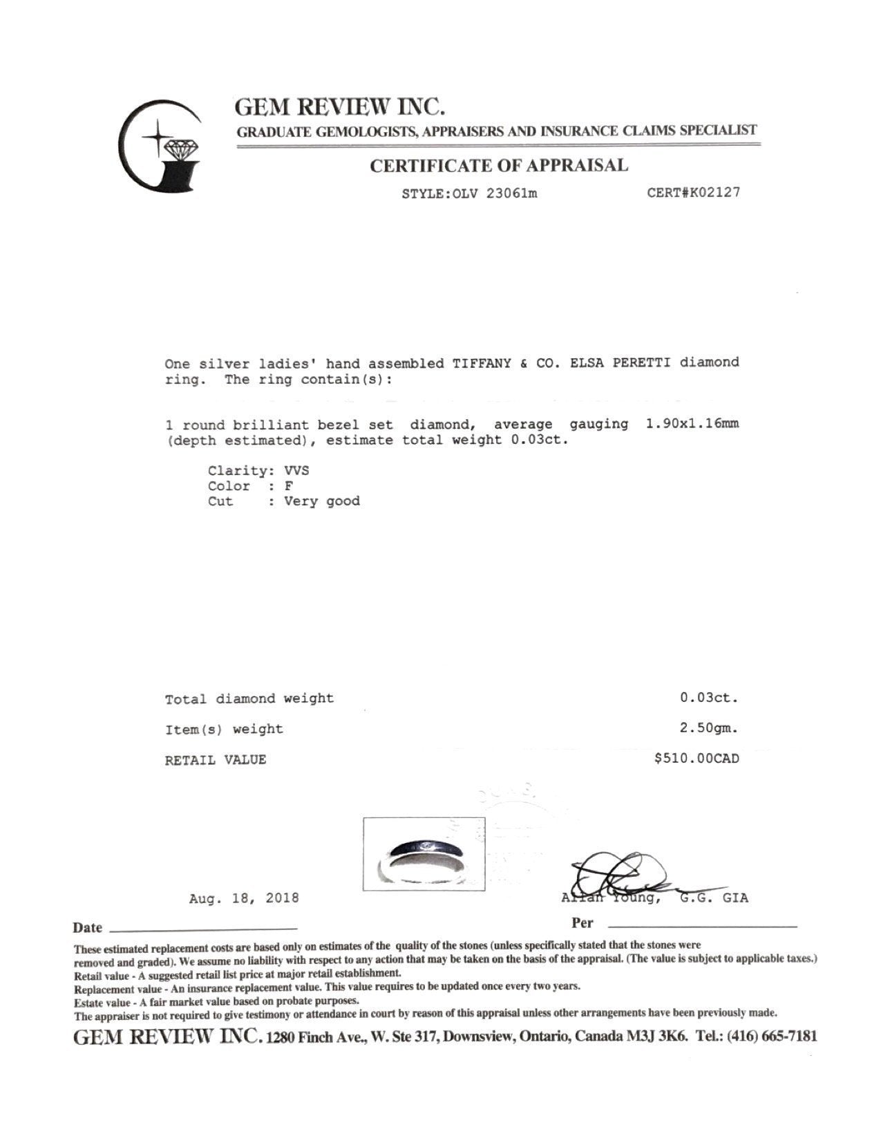 - 1 Round Brilliant Cut Diamond Weighing Approximately 0.03 ct. of VVS Clarity, F Colour, Very Good Cut