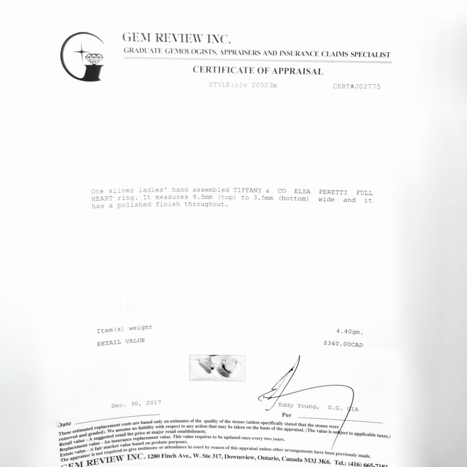 Tiffany & Co. Elsa Peretti Full Heart Ring in Sterling Silver; Size 7 1/2; Comes with Gem Review Appraisal