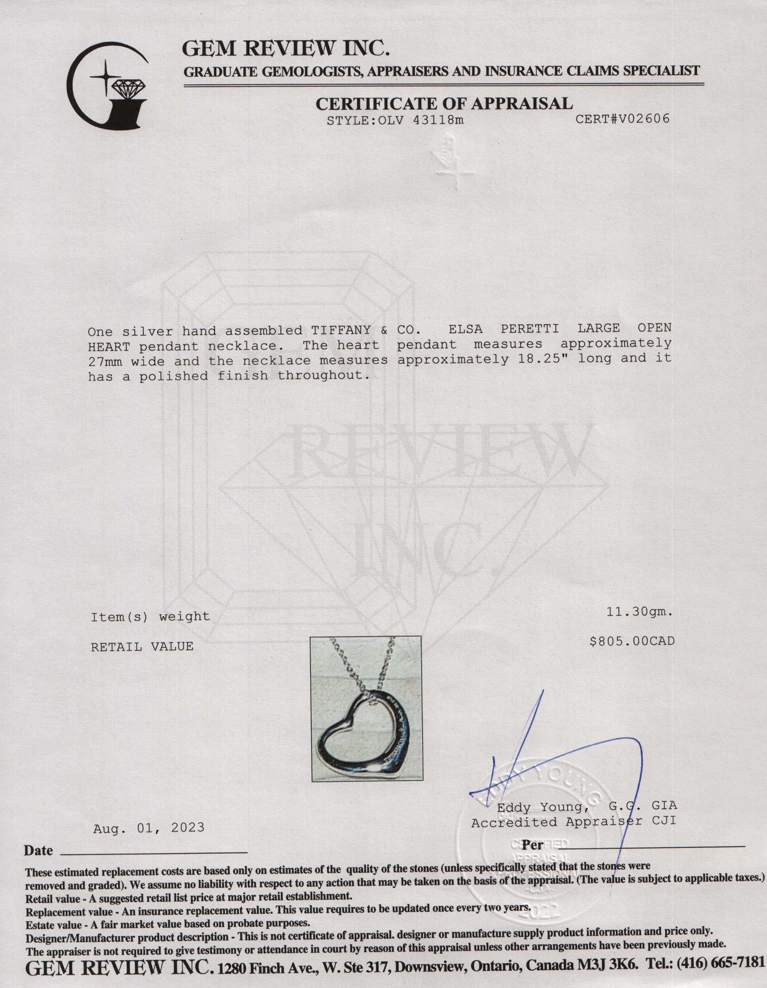 Tiffany & Co. Elsa Peretti Large Open Heart Pendant Necklace, 27 MM