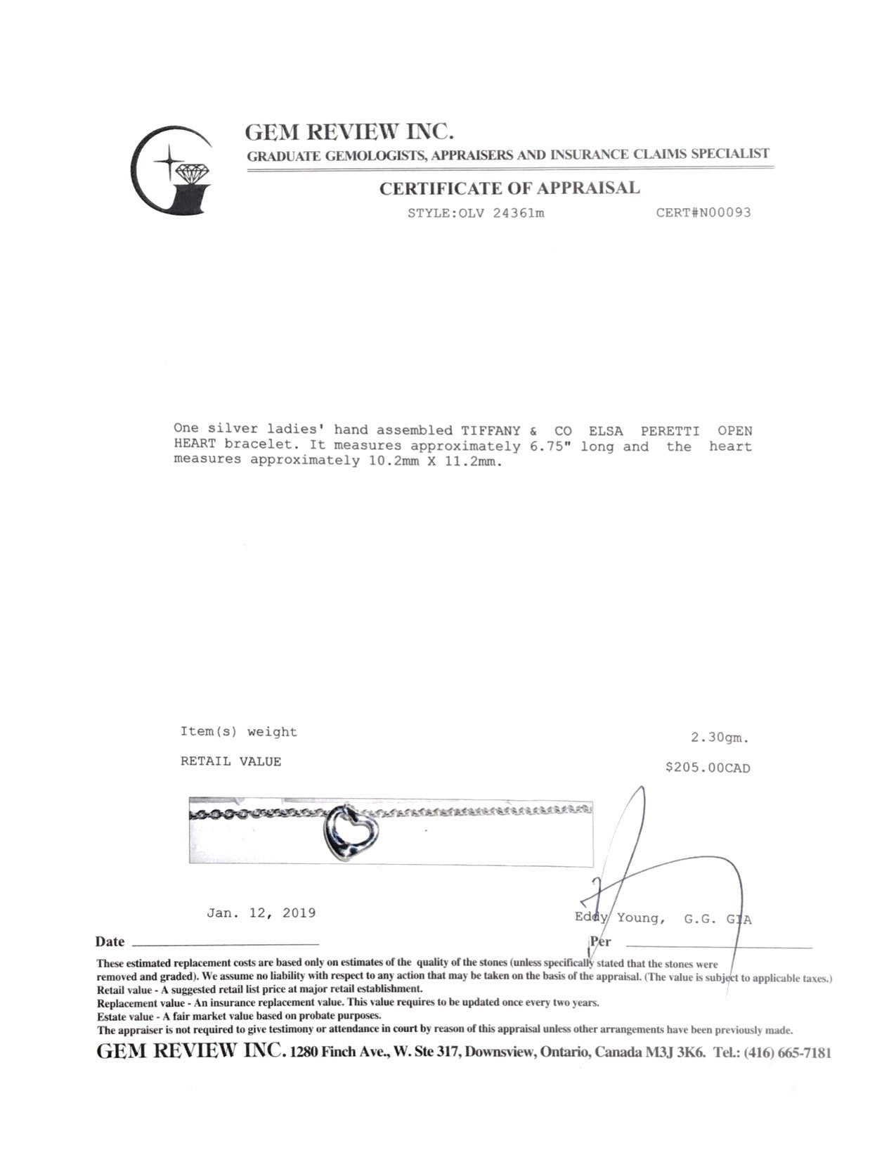 - Signature: Tiffany & Co. Peretti